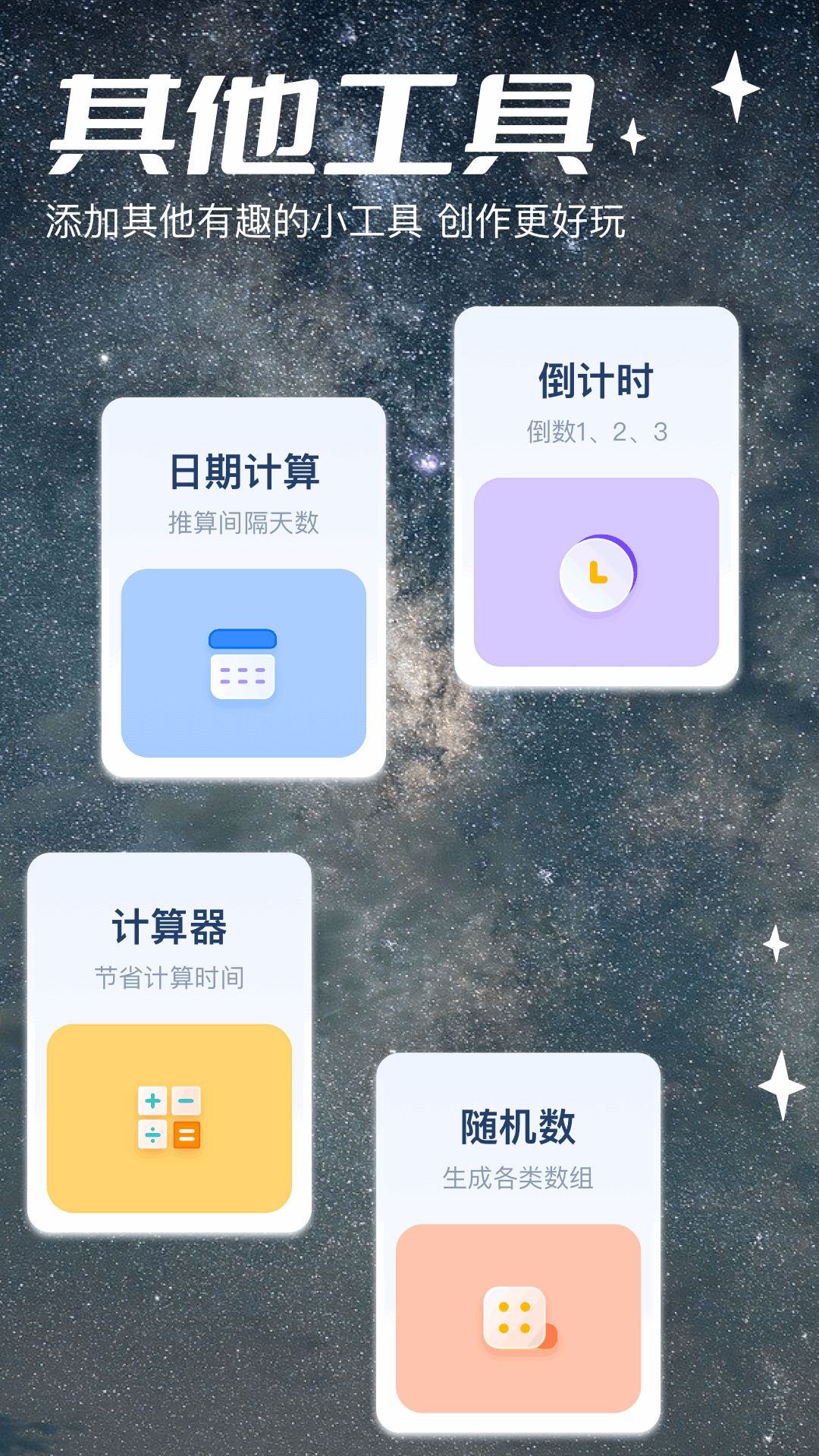 在其他工具方面,五彩视频提供的功能也十分实用。其中有精准的日期计算功能,能帮助您准确地计算日期相关的问题;实用的倒计时工具,可用于各种需要计时的场景;便捷的计算器功能,满足您简单的计算需求;还有生成随机数功能。