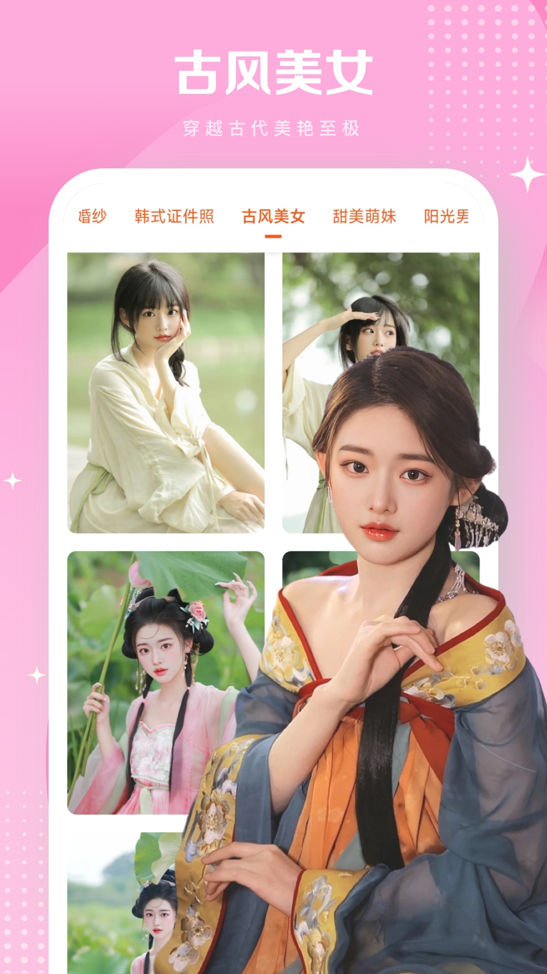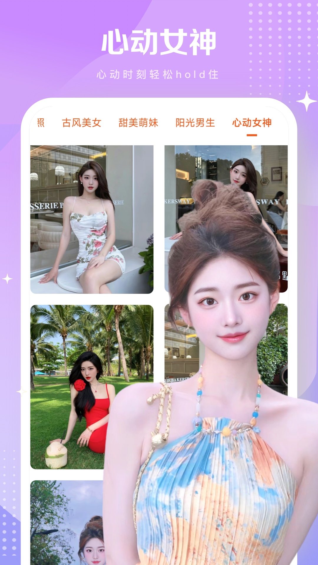 一键换脸是一款全新的AI智能换脸app,你只需要上传1张照片,就可以通过AI人脸融合技术一键合成古风汉服、青春风华、高冷女神、肌肉型男等热门装扮视频动态效果。app内多种风格一键转换,出场就会惊艳你的社交圈!