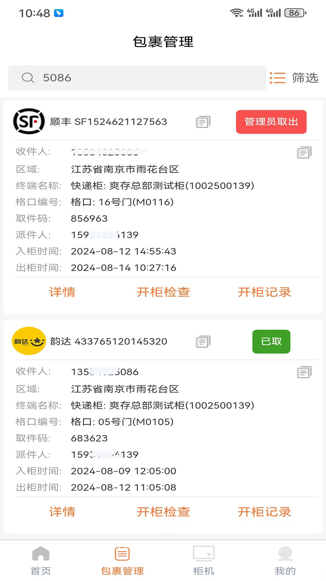 1、提供柜机管理,可以维护柜机基础信息、收费信息、以及远程操控柜机 2、包裹查询,支持手机号后4位、运单号后5位、取件码查询 3、基础数据查看