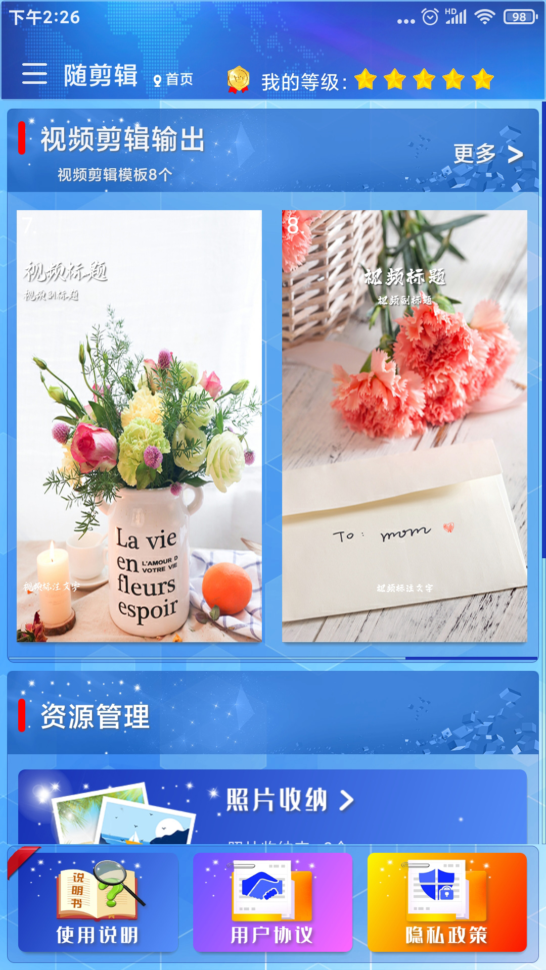 随剪辑是一款简单且实用的手机视频剪辑应用。它具备多种功能,涵盖视频剪辑输出、手机照片分组收纳、手机视频分组收纳以及手机音乐分组收纳等功能。随剪辑使用起来十分简便,功能却相当强大,能够让您在任何时间、任何地点迅速将照片、视频进行剪辑、配乐并合成输出,从而将美好的记忆留存下来。