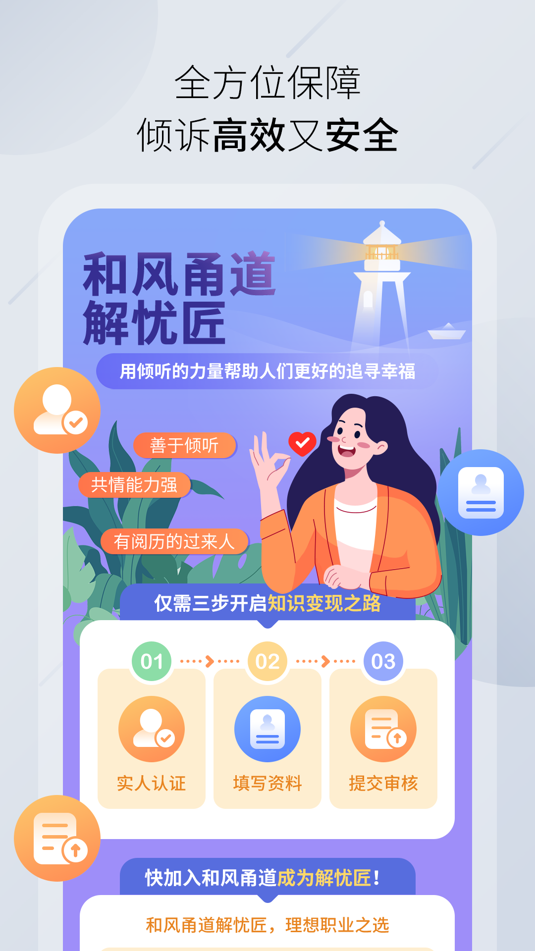 2、平台的解忧匠是善于倾听、真正懂得倾听艺术的人,能够用倾听的力量带给倾诉人更深的疗愈;