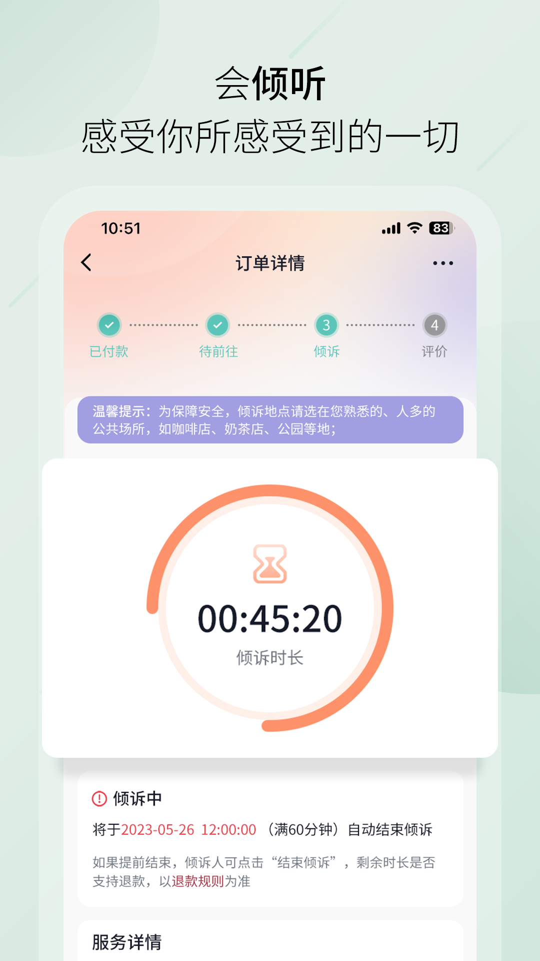 3、平台提供全方位的保障、合理化的流程,让有心事的人可以随时找到倾诉的出口、缓解压力