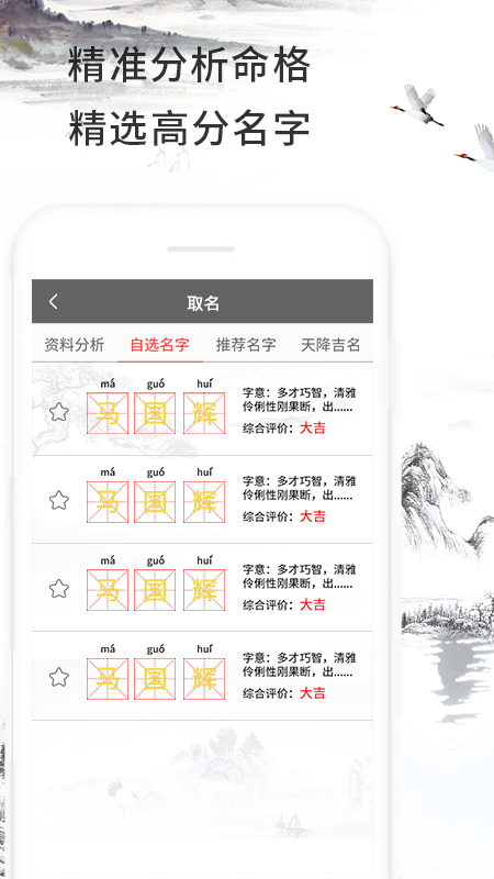 取名大全,这是一款专为父母定制的孩子取名软件,它能帮您化解孩子取名时的困扰。古人曾言:“赐子千金,不如教子一艺;教子一艺,不如赐子一名。”可见名字是多么重要,就怕取的名字不够理想。要知道,姓名对人的影响是会贯穿一生的,名字的好坏在很大程度上足以影响一个人的人生走向以及事业的成败。若想在人生道路上更易走向成功,那就需要拥有一个适合自己的好名字。而取名大全软件,就能为您提供一站式的取名服务。
