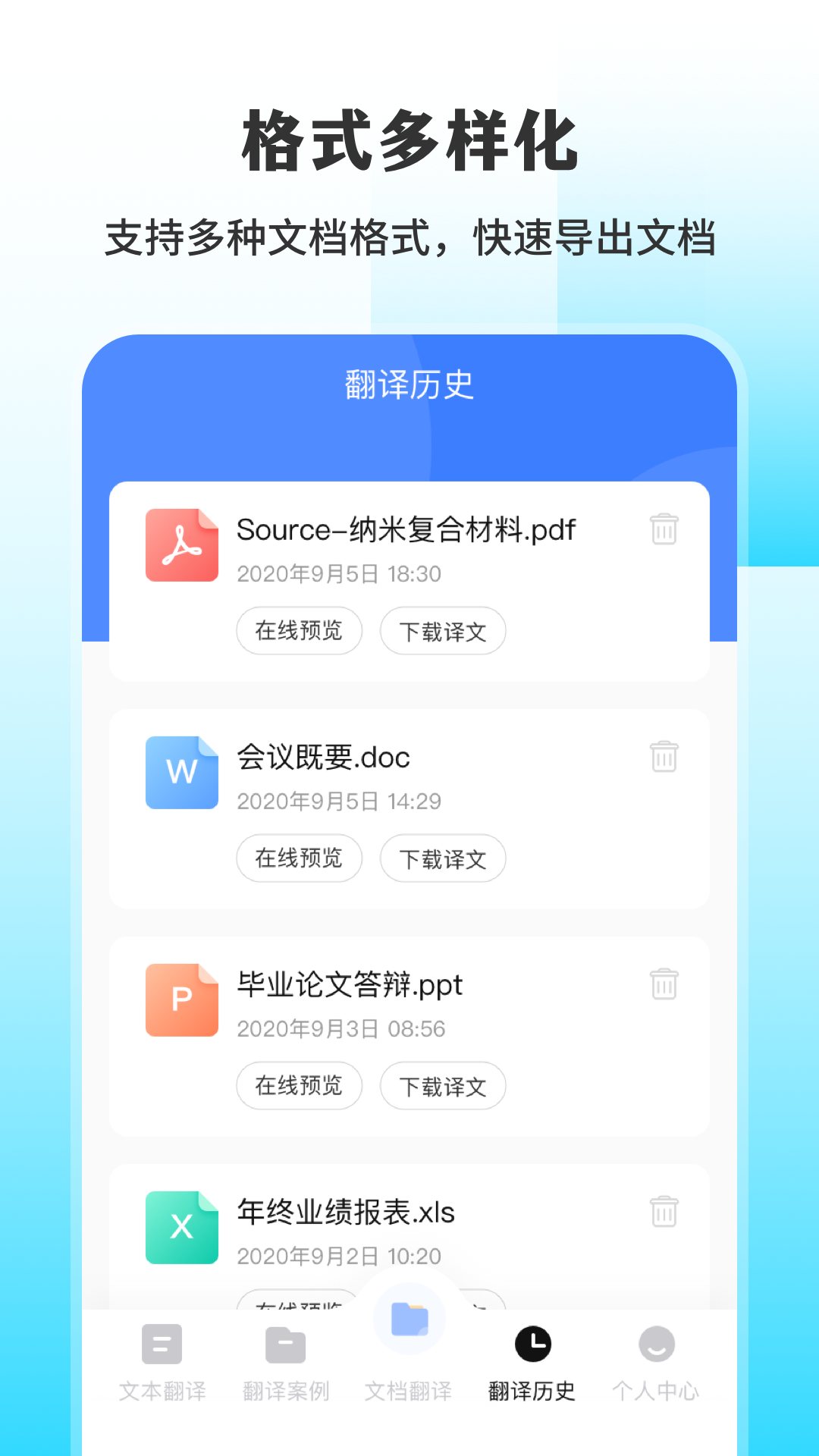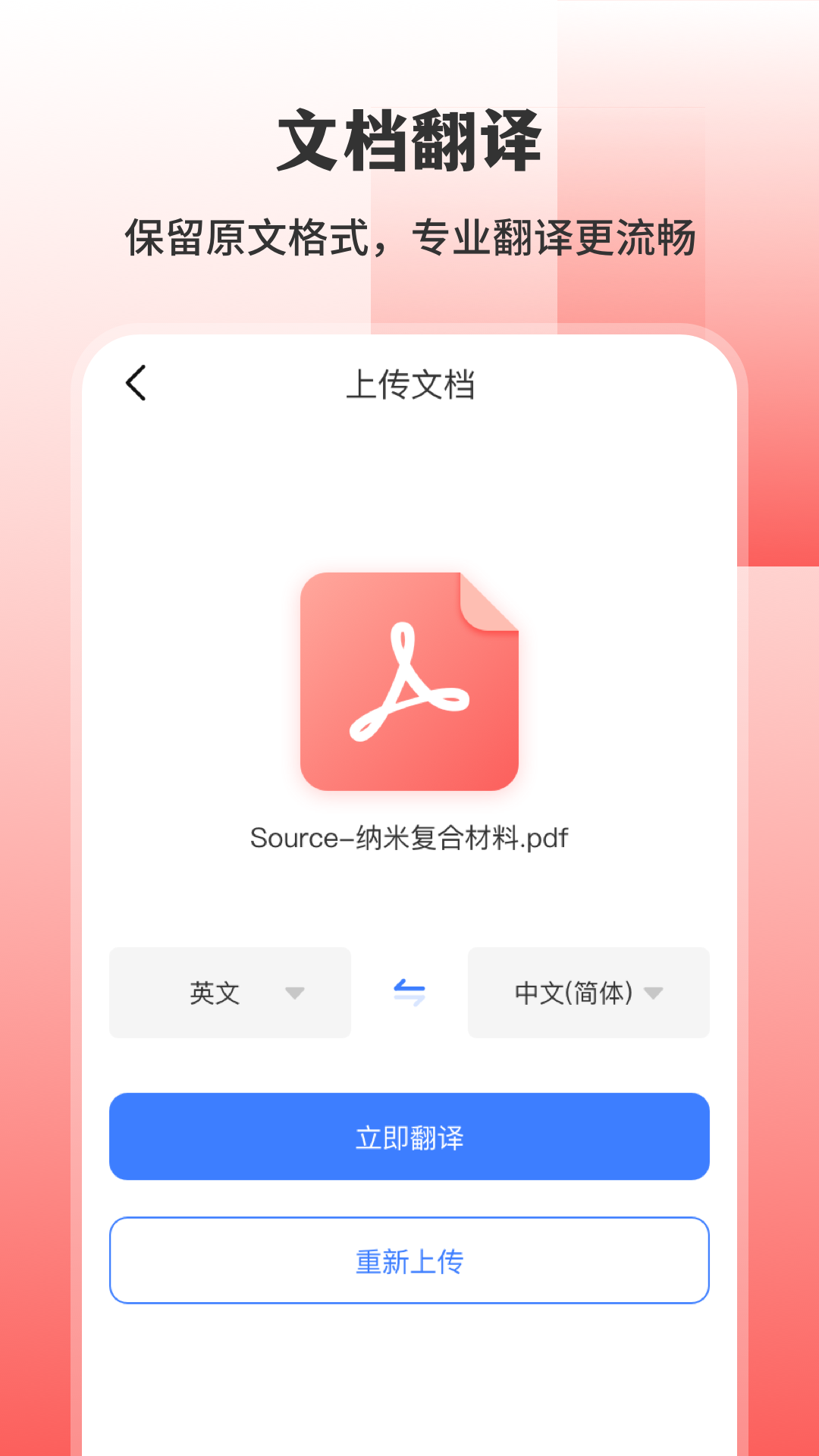 【文档翻译】支持word、ppt、pdf等多种文件格式,只需一键上传,即可翻译成中文。