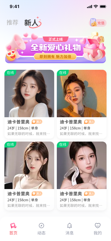 无他是一个即时性的社交平台,男女可在此在线聊天、进行视频互动。它能借助文字、语音、图片、视频等形式,促使附近的男女迅速配对,助力单身男女寻觅到心仪对象。这里实时在线互动不断,总有那么一个Ta渴望陪伴你。
