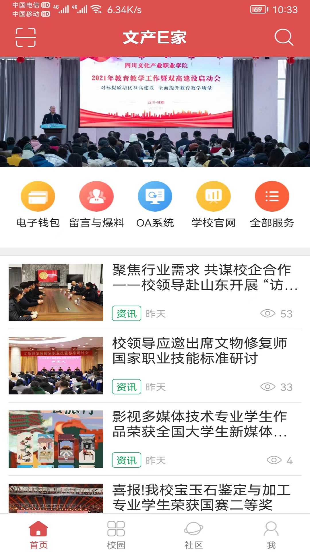 “文产E家”是四川文化产业职业学院打造的智慧校园综合服务平台,平台深度结合了学校日常教学管理业务,为师生提供各类的生活及学习的一站式服务。