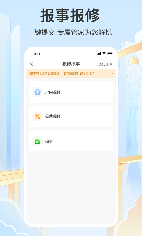 ✓报事报修、投诉建议一键提交,马不停蹄为您解忧