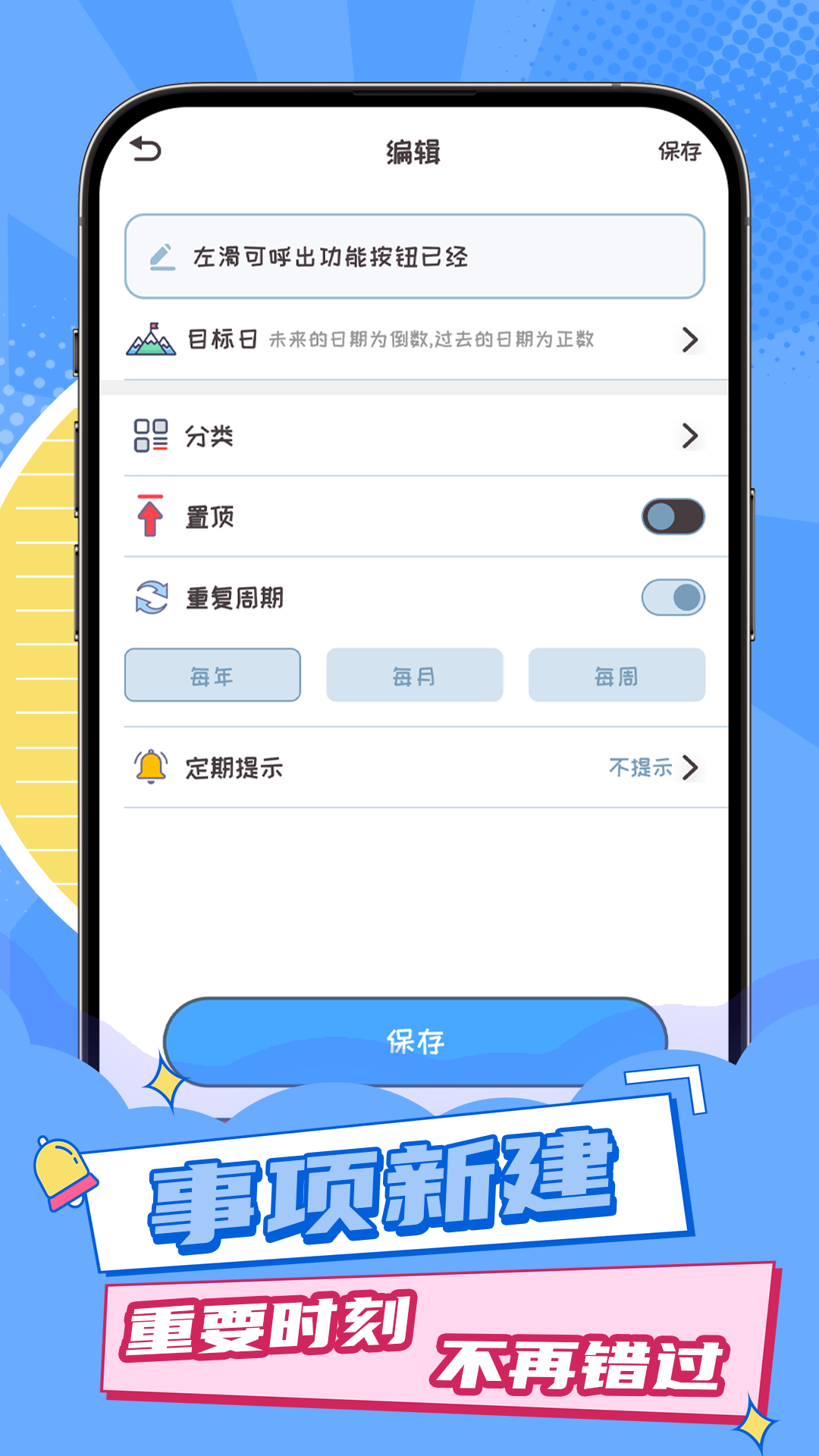 生活充满了值得纪念的时刻,而倒数日daily就是您记录这些时刻的完美工具。无论是重要的纪念日、即将到来的事件,还是日常生活的点滴,我们都能帮助您一一记录和提醒。立即下载,让我们共同珍惜时间,记录生活,不错过每一个重要瞬间。