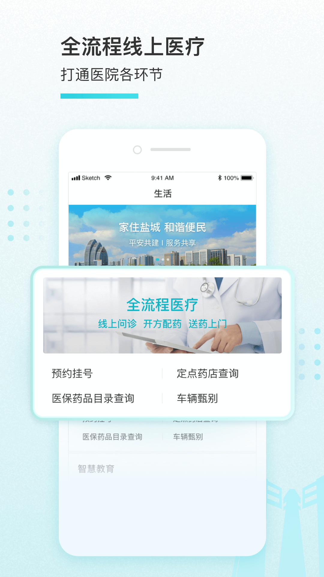 4.全流程线上医疗,打通医院各环节,串联医院就诊缴费,覆盖诊前诊中诊后。