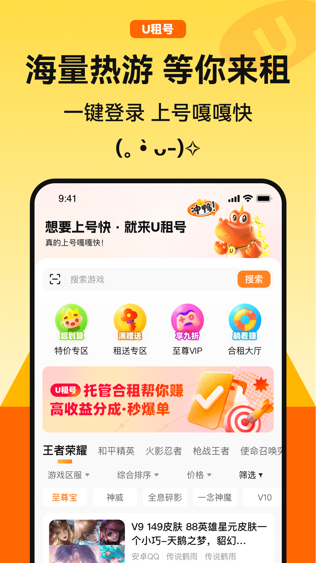 U租号是一个专业的游戏租号平台,它为游戏玩家提供端游、手游等各类高级账号。