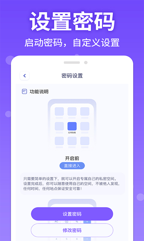 它能够隐藏手机桌面的游戏与应用,不但可以把游戏、应用隐匿起来,避免被他人察觉,而且能隐藏私人社交APP以及私密照片呢。