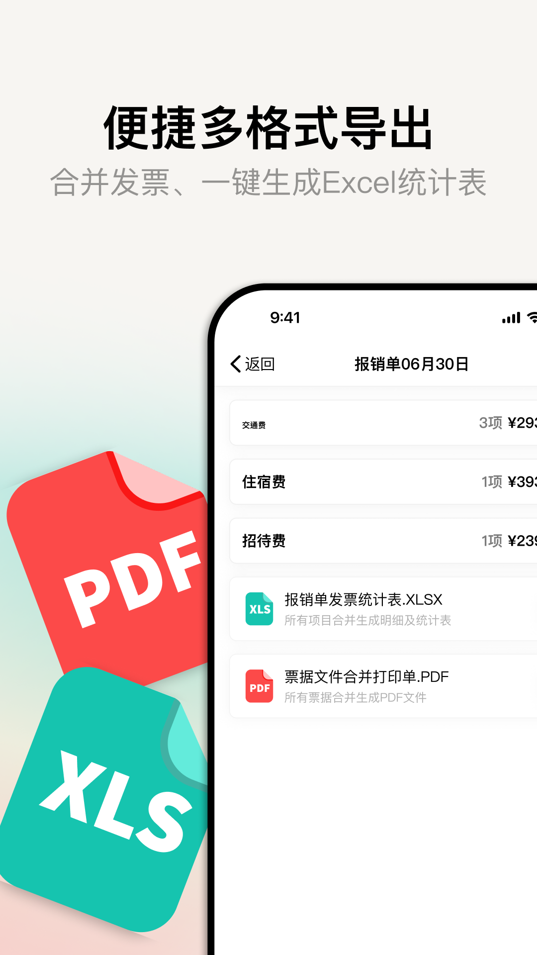 - 生成报销单:方便快捷地合并发票并导出,只需一键就能生成报销单。