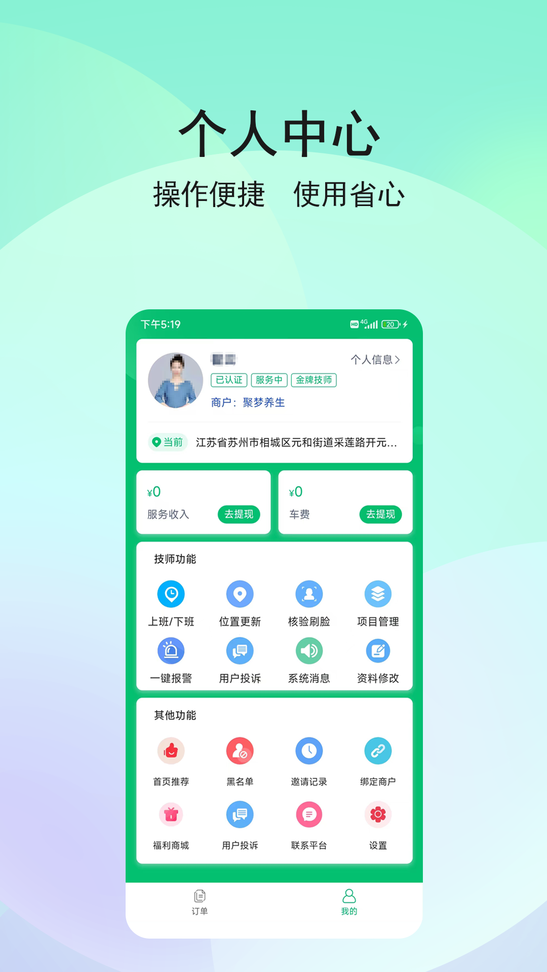 九点技师端是是便捷专业的24小时020上门服务预约平台,为商户与技师之间制定的预约服务的桥梁,方便技师轻松获得更多用户订单,九点技师端可以为技师提供管理、订单、协助接单服务等功能,为技师提供便捷的运营工具。