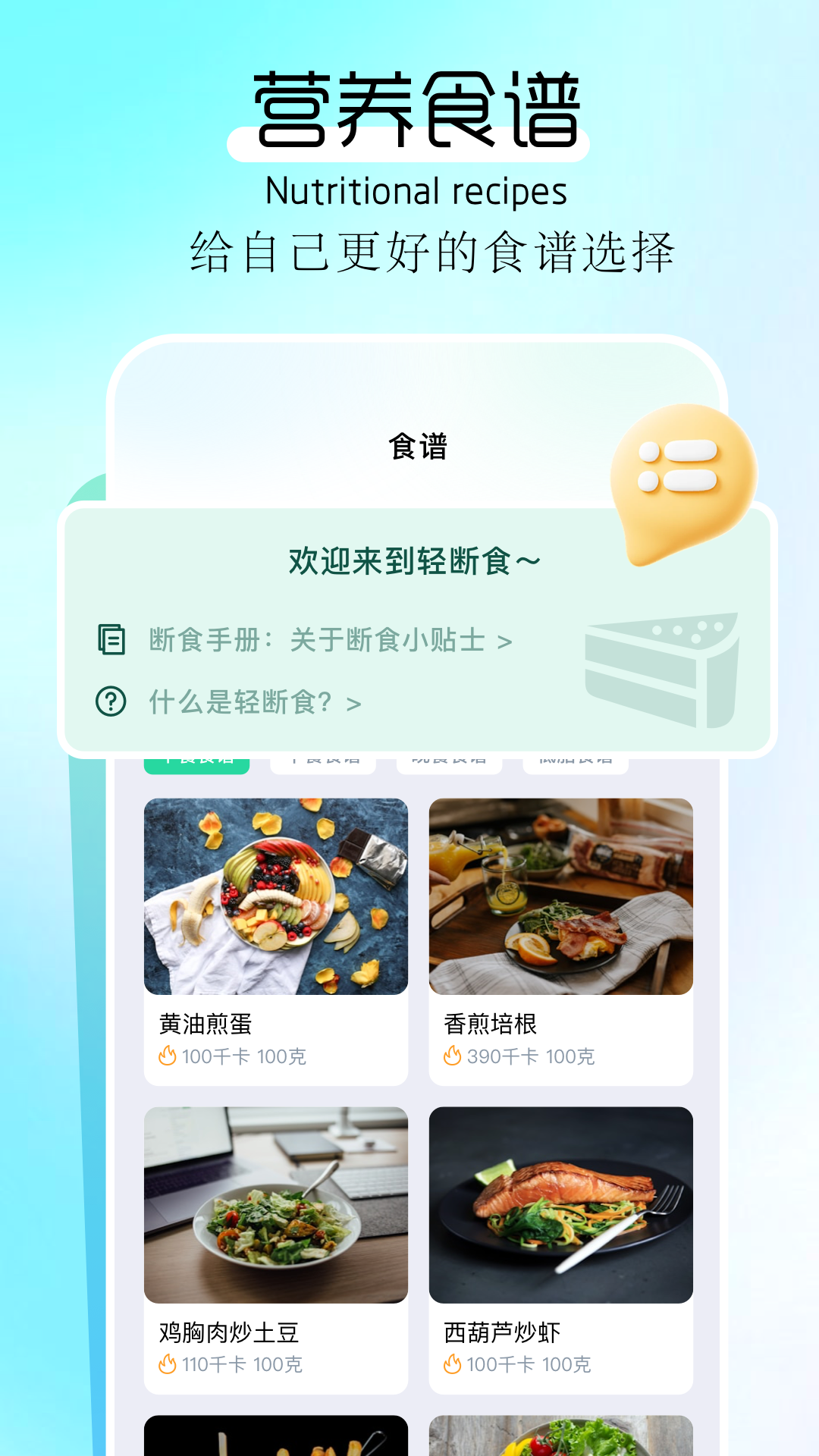 它还为用户提供精选食谱,这使得轻断食过程更加科学、健康并且易于施行。