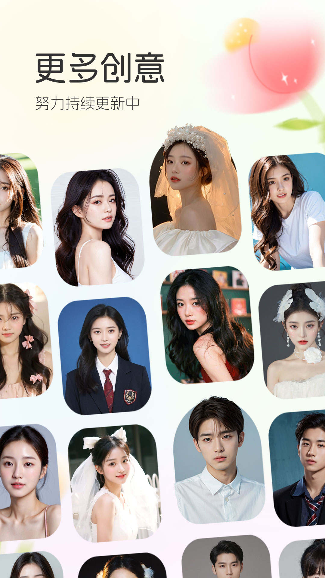 AI艺术照支持一键生成精致个人形象照片,让你轻松拥有一份个人艺术照片集,轻松成为朋友圈中的颜值代表!还有海量模板任你挑选,不论是通用证件照、韩系证件照、港风、夏日少女、芭蕾风、还是气质婚纱等,统统一键拥有,让你展现百变风格的自己!