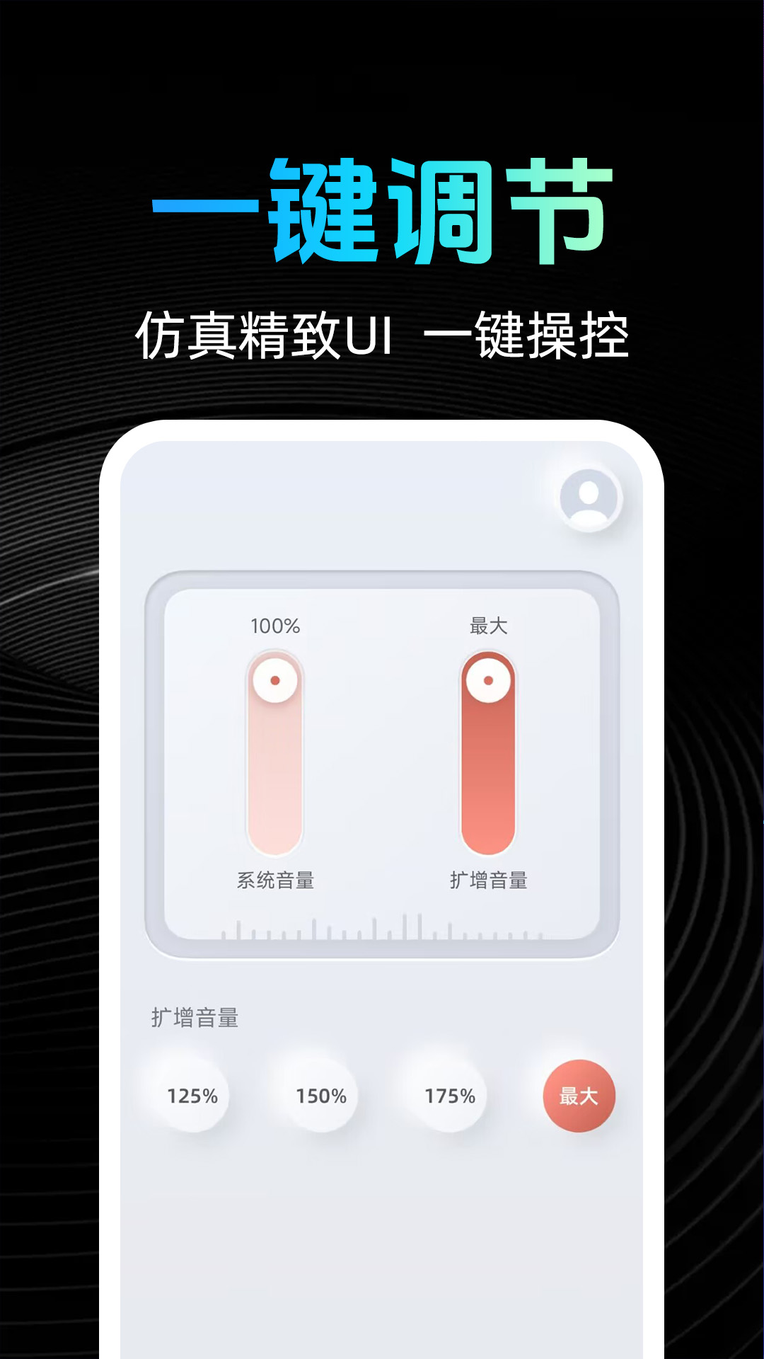 简单的页面、纯净无广的手机音量放大app,一站式扩大您的声音和音量,音乐播放器,视频播放器,游戏和系统音量(如铃声,通知和警报音量)。在不损失音质的情况下增加音量,大音量助推器。