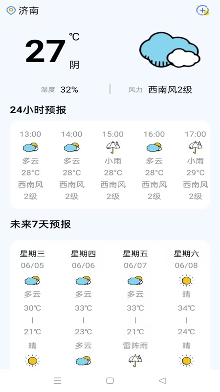 芭蕉雷雨是由东营智领未来智能科技有限公司所研发的一款便民天气预报软件。它能让用户便捷地查询当地的即时天气状况,还能查看未来7天的天气情况。而且,用户可以更换城市,从而查询自己所在城市的天气预报。