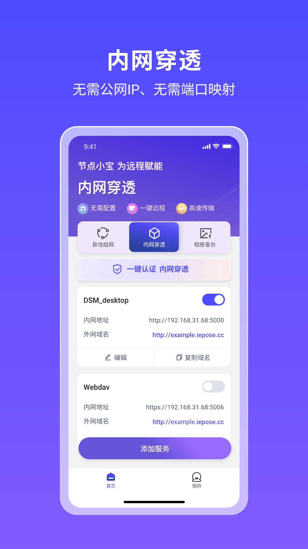 它的功能十分强大,在多个方面表现出色。其一,它同时具备异地组网和内网穿透功能。在异地组网方面,仅需在两台设备上安装节点小宝并进行设备绑定,就能轻松完成组网;而在内网穿透方面,当设备组网成功且受控端为NAS设备时,会自动将设备本机添加到服务列表,此时直接点击“NAS管理”,待设备连接建立完成后,网页将自动拉起,NAS登录界面也会自动打开。其二,它采用先进的自研点对点安全直连技术,这种技术能实现设备的点对点连接,无需购买转发服务器,直连通道的速率取决于用户的宽带速率,这一特性可使用户享受到更快速的服务,并且能确保数据传输的高效与安全。其三,节点小宝的传输速度极快,它支持对NAS、Windows、macOS以及路由器的访问服务和设备拓展服务,像远程开机、远程观影、文件传输、远程BT下载、SSH、Telnet、Docker管理等服务都不在话下,用户借助这些功能可以轻松管理全局域网设备及服务。