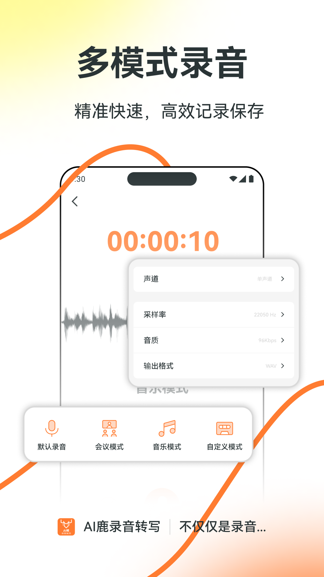 多模式录音,不同场景灵活切换,音质清晰,流畅不卡顿