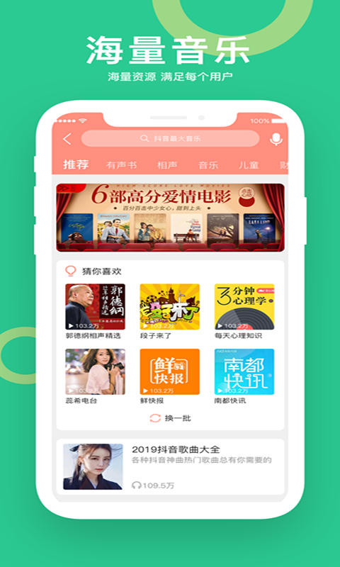 【音乐功能】无需动手操作手机,想听什么只要说出来就行!这里有丰富的在线音乐资源,使用时可以通过语音进行搜索和控制。