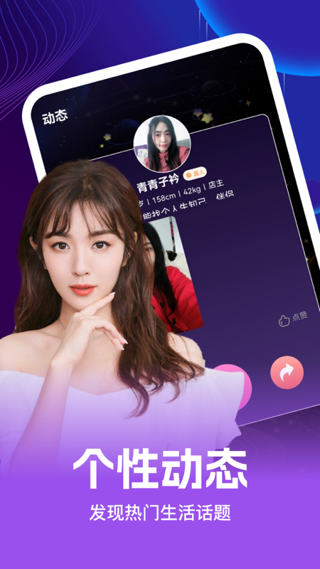 【同城交友】作为同城交友软件,它提供同城聊天功能。您可以像玩漂流瓶一样,寻找同城陌生人的爱情,尽情在同城聊欢、探陌约会,还能与情侣甜蜜处CP,大方秀恩爱。