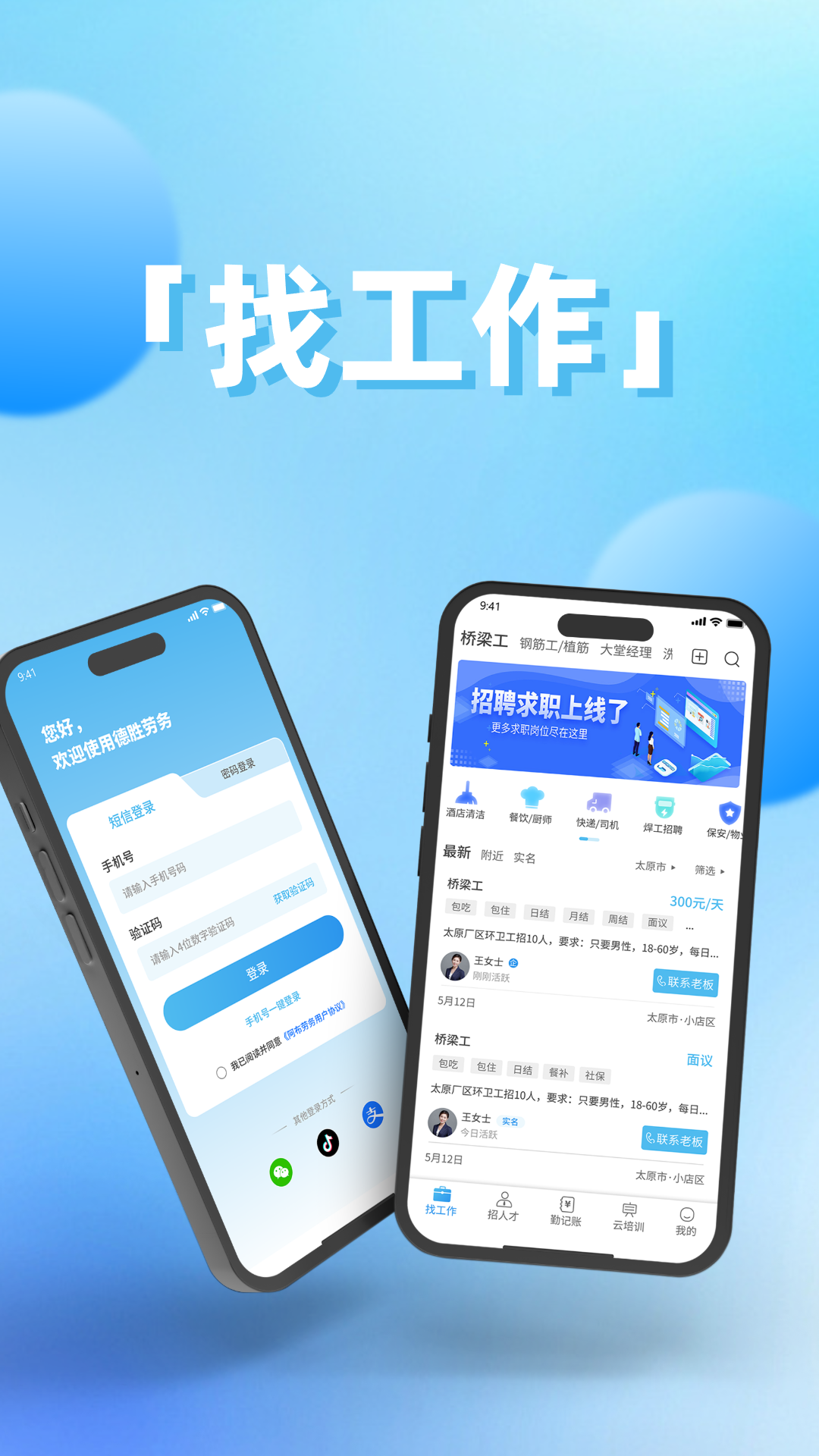 德胜劳务-建筑劳务综合服务平台,基于大数据智能分析,将用工方和工人进行精准高效匹配,为建筑工人提供真实可靠的招工信息,工友找活更高效,工头招工更快捷。德胜劳务致力于为千万建筑工友提供智能高效的信息服务平台,有效解决建筑人才供应问题,为广大建筑工友构建一个高效的劳务招聘平台。