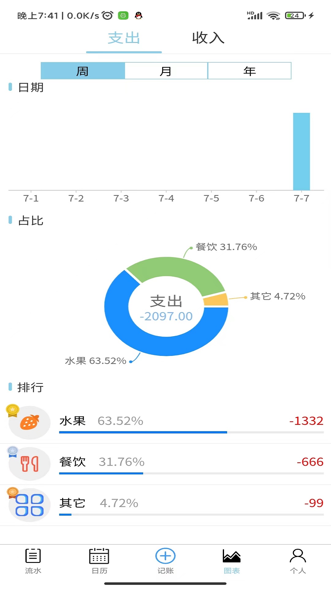 其三,借助折线图与柱状图对账本数据进行统计。