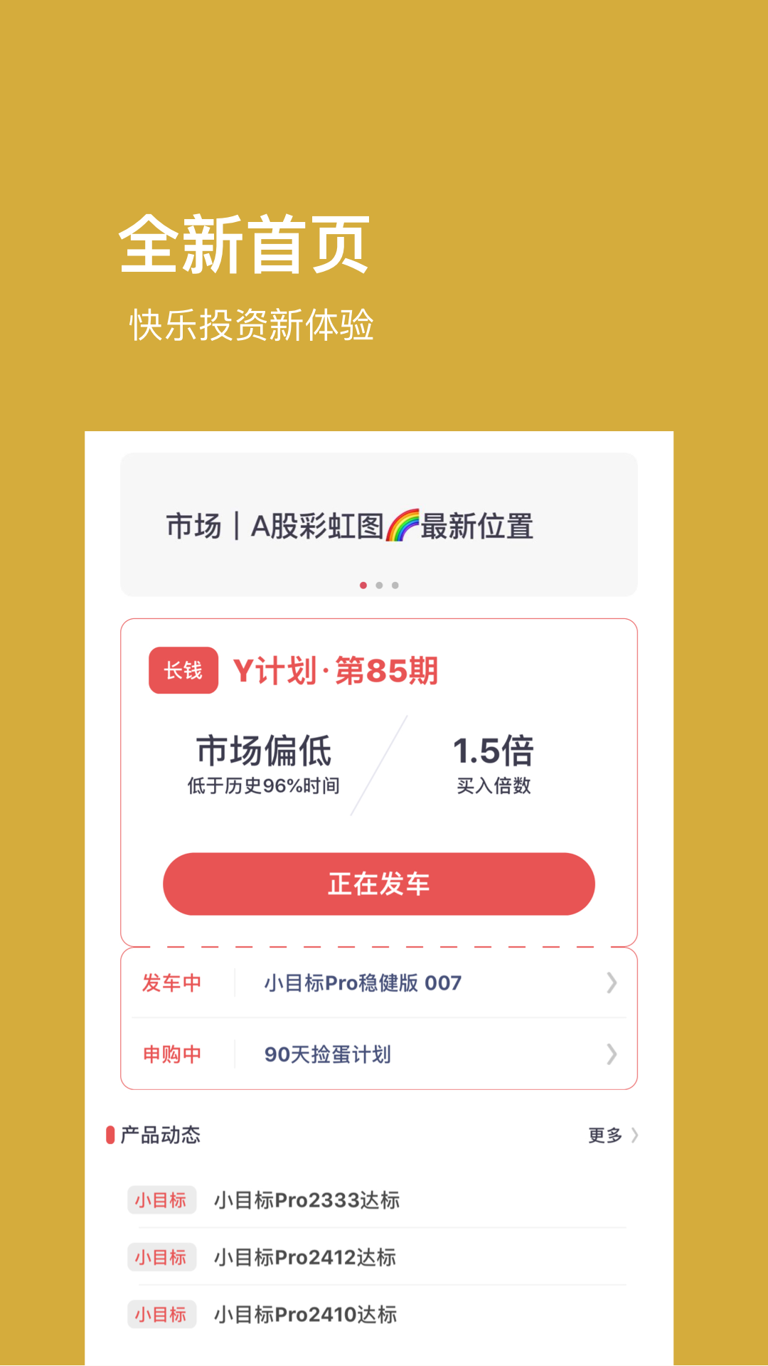 【小目标】这是一种目标收益在5% - 8%之间、具备自动止盈功能的基金投资服务。其自动止盈服务非常省心。自2018年上线到2021年2月,小目标在实盘发车的111期中,有95期达标,平均每3.3个月就能达到5% - 8%的目标收益率,是基金豆中备受好评的组合产品。