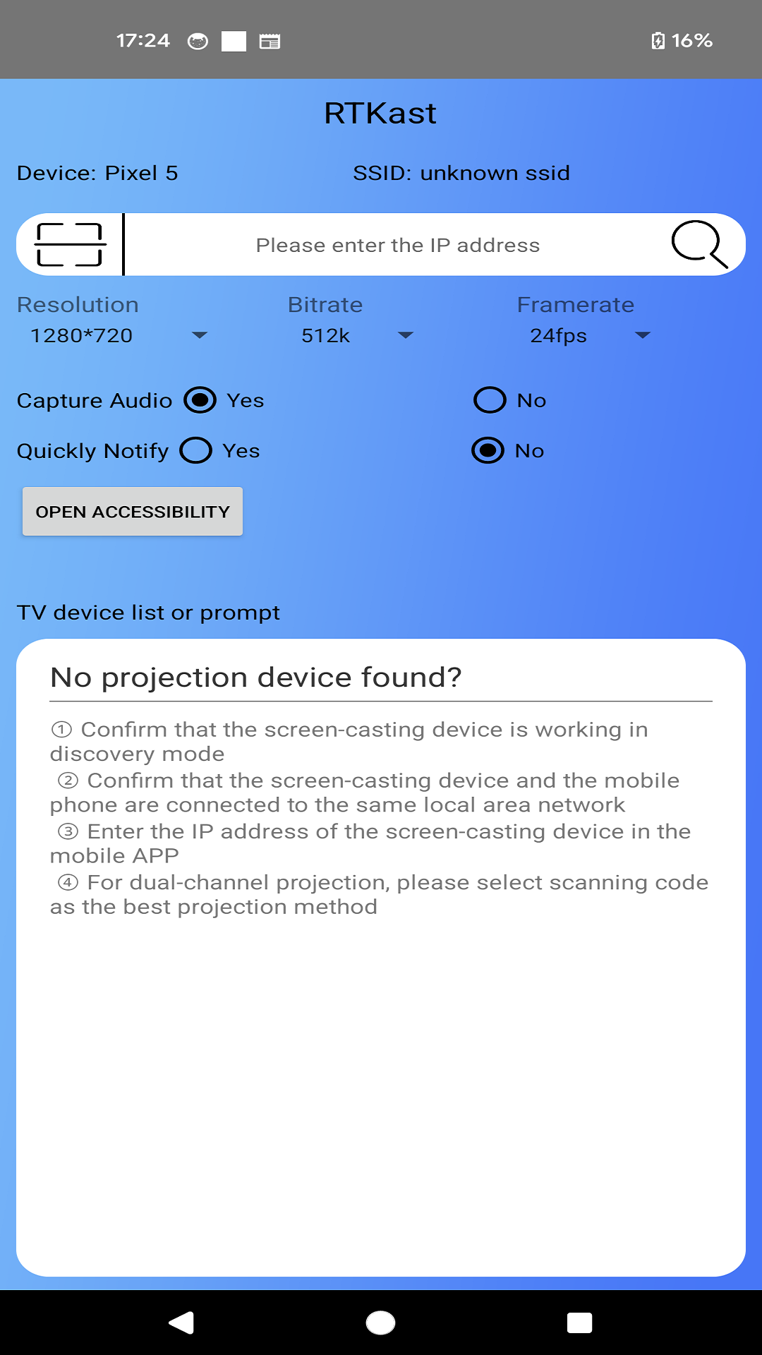 RTKast是一款移动应用程序,它需与电视端的RTKastPlayer协同使用,适用于那些已经安装或者原装就带有RTKastPlayer的智能设备。倘若您的设备所搭载的操作系统为android P版本或者更高版本,那么这款屏幕镜像应用就能使您轻松达成手机与电视等设备间的屏幕共享,为您正常的娱乐、工作和交流提供便利。在使用这个应用的时候,即便您设备所连接的路由器无法访问互联网,只要您的手机和电视设备连接到同一个局域网,就能完成正常的投屏操作,实现从手机到电视的屏幕共享。