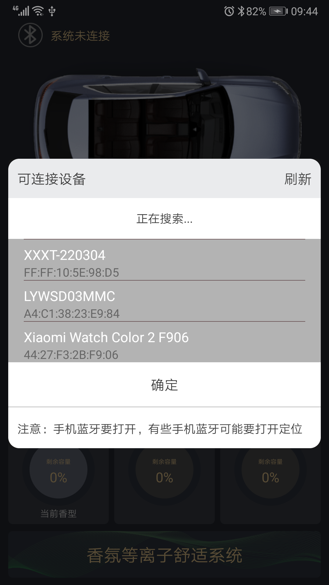 七彩香氛是一款专门用于控制汽车终端设备——“七彩等离子香氛系统”的应用。可以搜索局域网内设备,进行设备蓝牙连接,从而进行设备开关控制、工作模式调节、显示设置、香型切换、浓度调节等,实现对七彩等离子香氛系统设备的遥控功能。