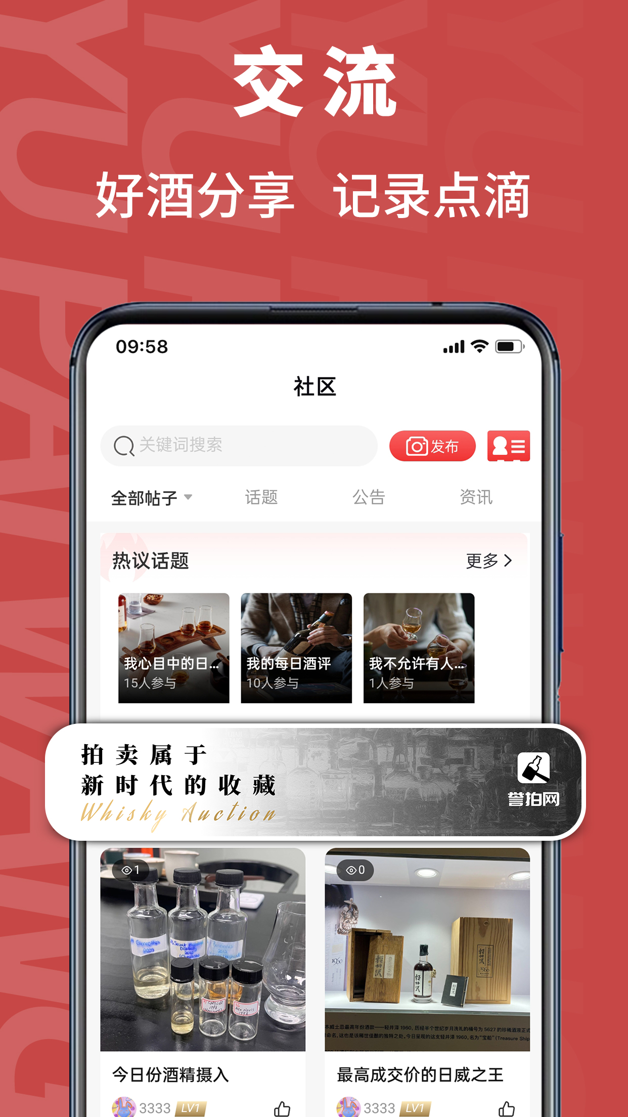誉拍网,这是一个威士忌生态综合服务平台。它提供威士忌零售、拍卖服务,还拥有爱好者交流社区等多种服务内容。在这里,国内众多威士忌爱好者得以汇聚。他们能随时随地参与交流互动,并且可以时刻精准掌握威士忌的价格趋势。誉拍网致力于构建一个专属于威士忌爱好者交流的专业平台,通过拍卖这种形式,开启属于新时代的威士忌收藏之旅。