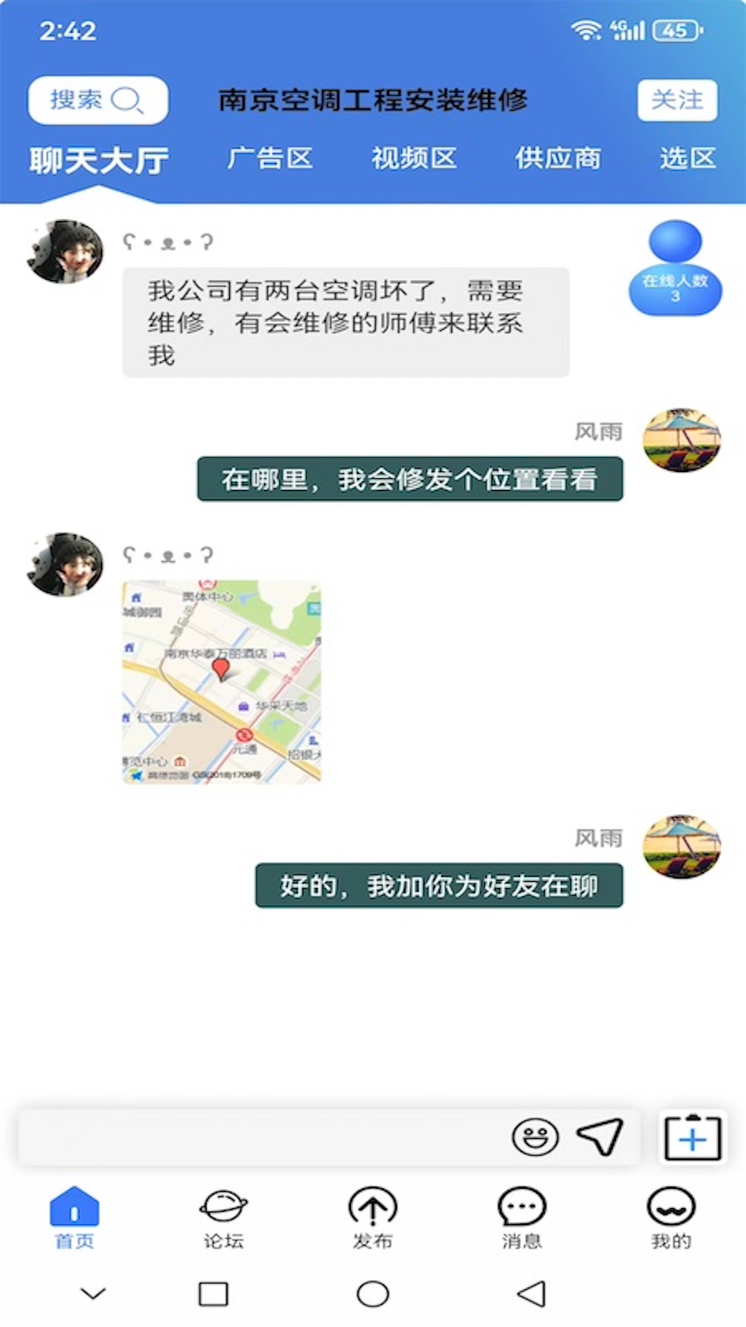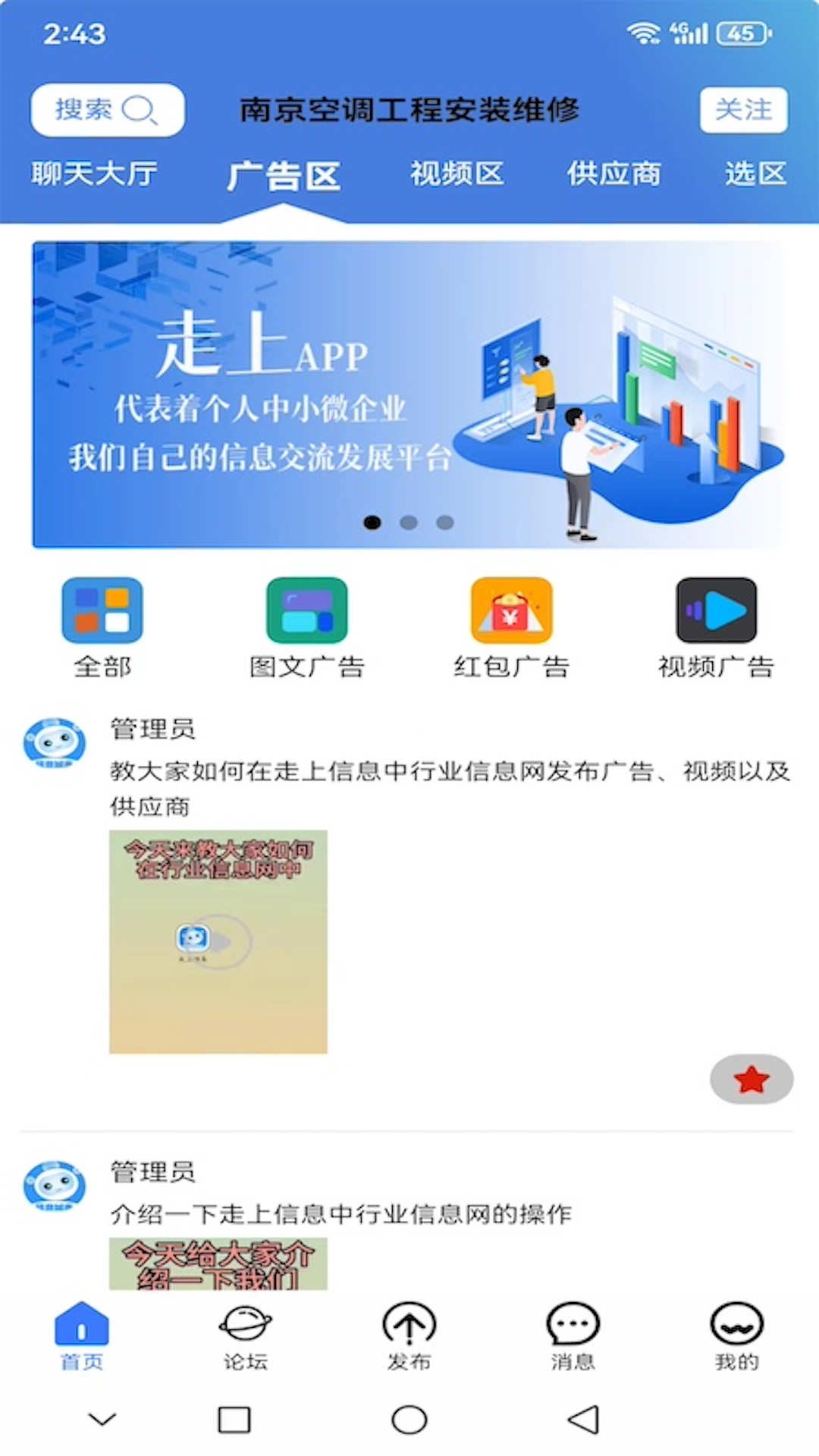 用户可免费创建能容纳万人的行业聊天群信息网。在一座城市的一个行业内,仅允许创建一个这样的信息网。一个行业信息网包含聊天大厅、广告区、视频区、供应商这四大功能模块,它集成了技术交流、社交互动、广告发布、短视频发布、企业信息发布以及信息搜索等多种功能。借助这个平台,能够实现单一行业内部、本行业与其他行业、城市与城市之间的信息交流与互通。
