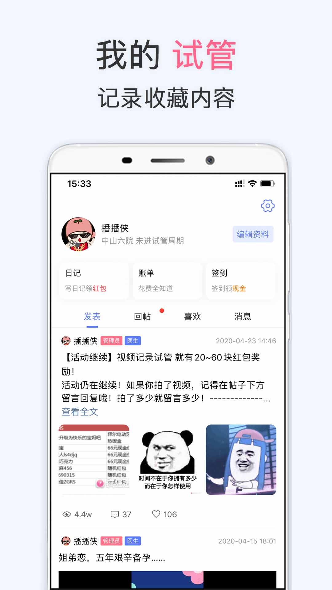 其四,App内置试管社区,这里汇聚了众多姐妹的试管婴儿案例,详细记录了各个试管移植阶段(流程)。