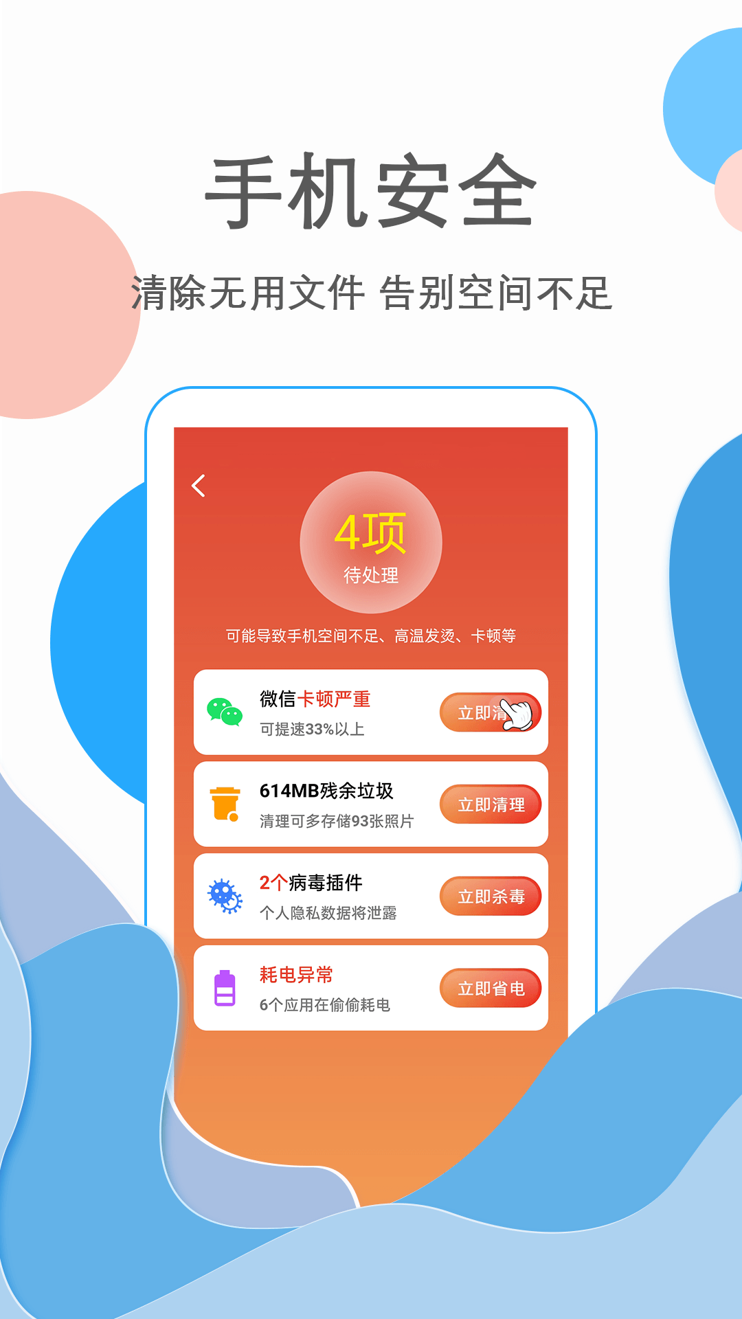 《手机清理》一键深度清理缓存垃圾, 释放内存,手机更干净