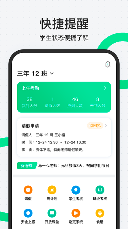 能够便捷地发布通知,轻松查看学生的考勤情况,还可以迅速发布活动安排,高效完成教学管理工作。