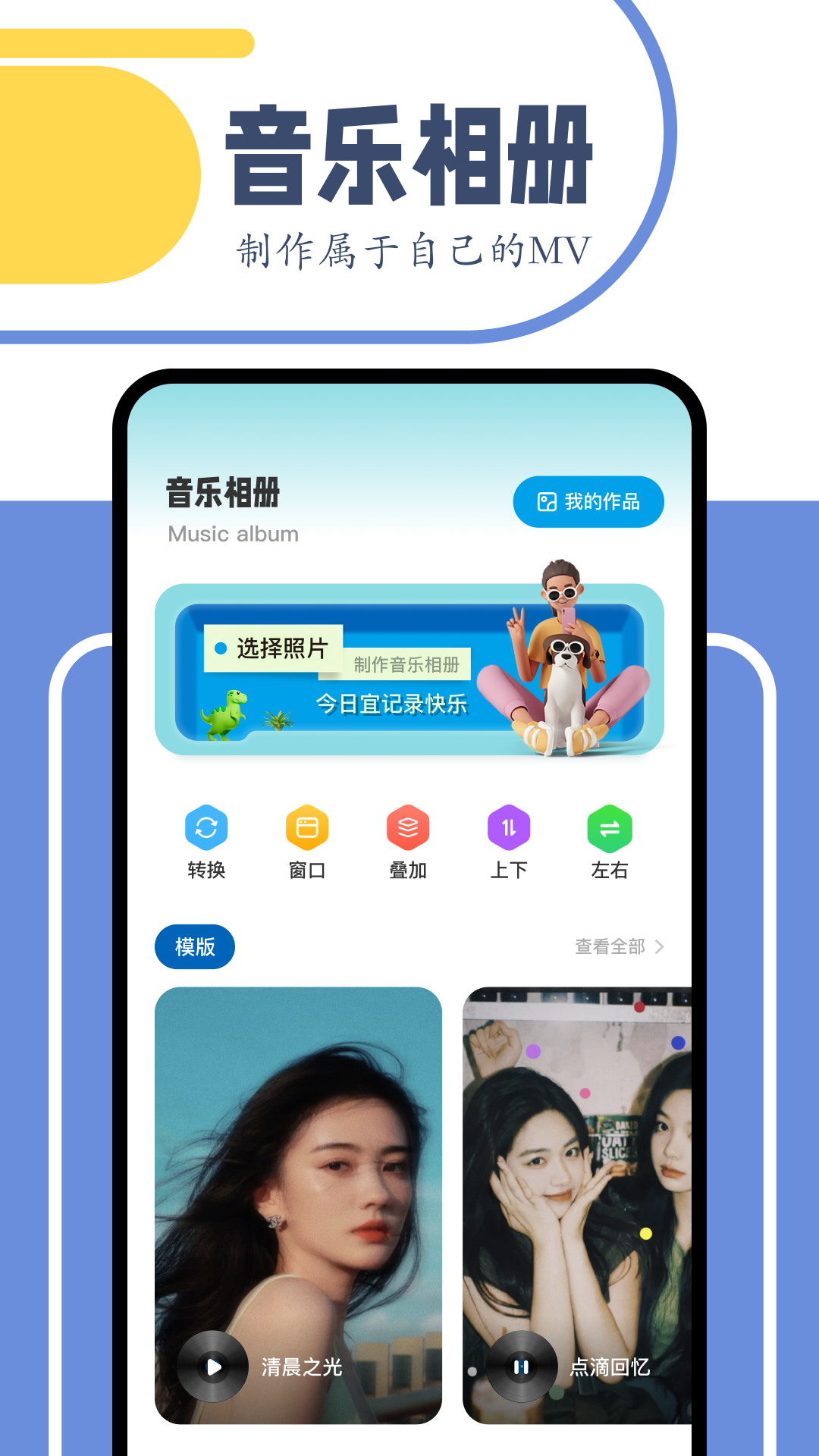 通过这个软件,您可以亲手打造各式各样精美的相册。为相册配上动听美妙的音乐以及炫酷的转场特效后,原本静态的照片瞬间就会变成精彩纷呈的视频。而且,软件提供便捷的视频剪辑编辑工具,使用这些工具能让您制作出的视频相册极具魅力!