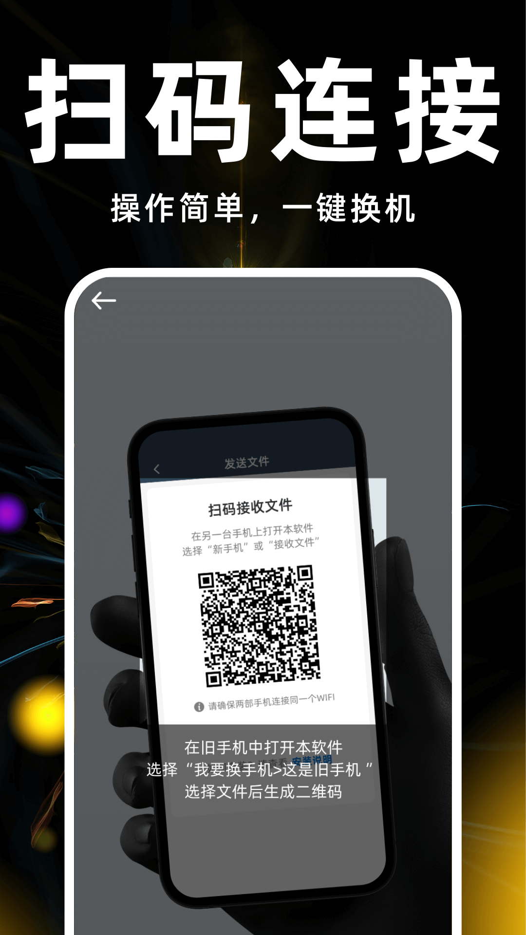 【扫码连接,零流量】不消耗手机流量,无需数据线连接,面对面扫码即传,稳定不掉线