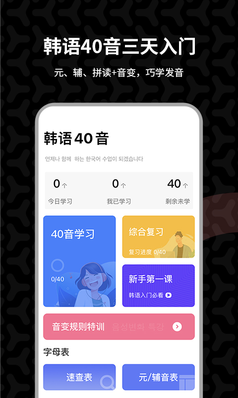 能够让您韩语起步快速达成!迅速开启韩语学习入门之旅,包含韩语发音词汇入门知识,可免费学习韩语发音单词,更有真人韩语发音,精准地对韩语口语和韩语发音给予指导呢!