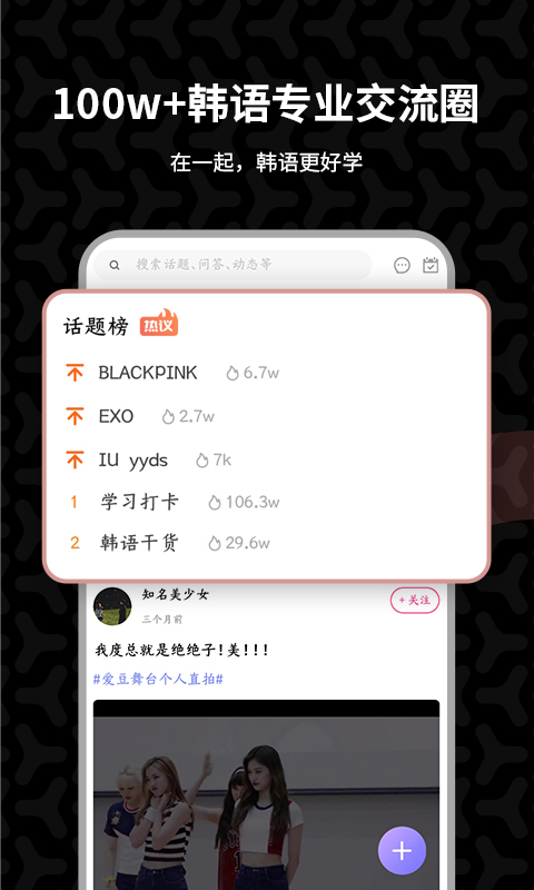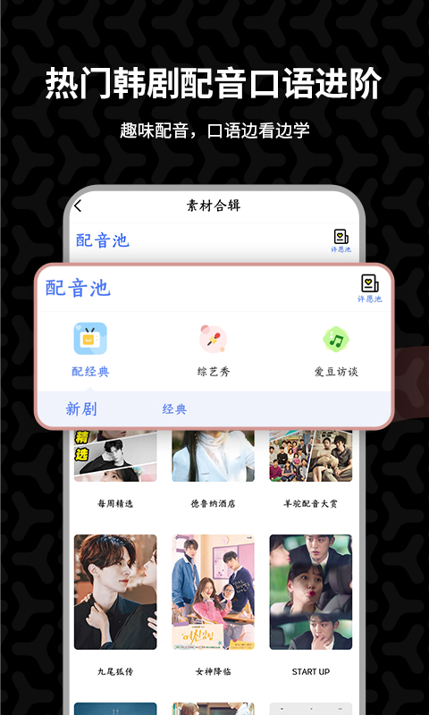 在这里,您可以看偶像爱豆比拼韩语!这里是韩影迷、韩剧迷、韩漫迷的欢乐天地!各种韩剧app、韩剧电影、韩剧大全中的精编课程任您挑选!