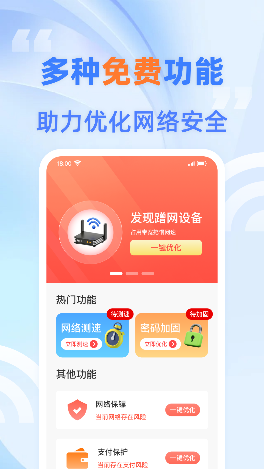 免费快连WiFi,您身边的一站式网络管理神器,集多种免费功能于一身,为您打造极速、安全、便捷的网络体验。无论是家庭网络还是公共WiFi,我们都能助您轻松管理,确保您的网络安全无忧。
