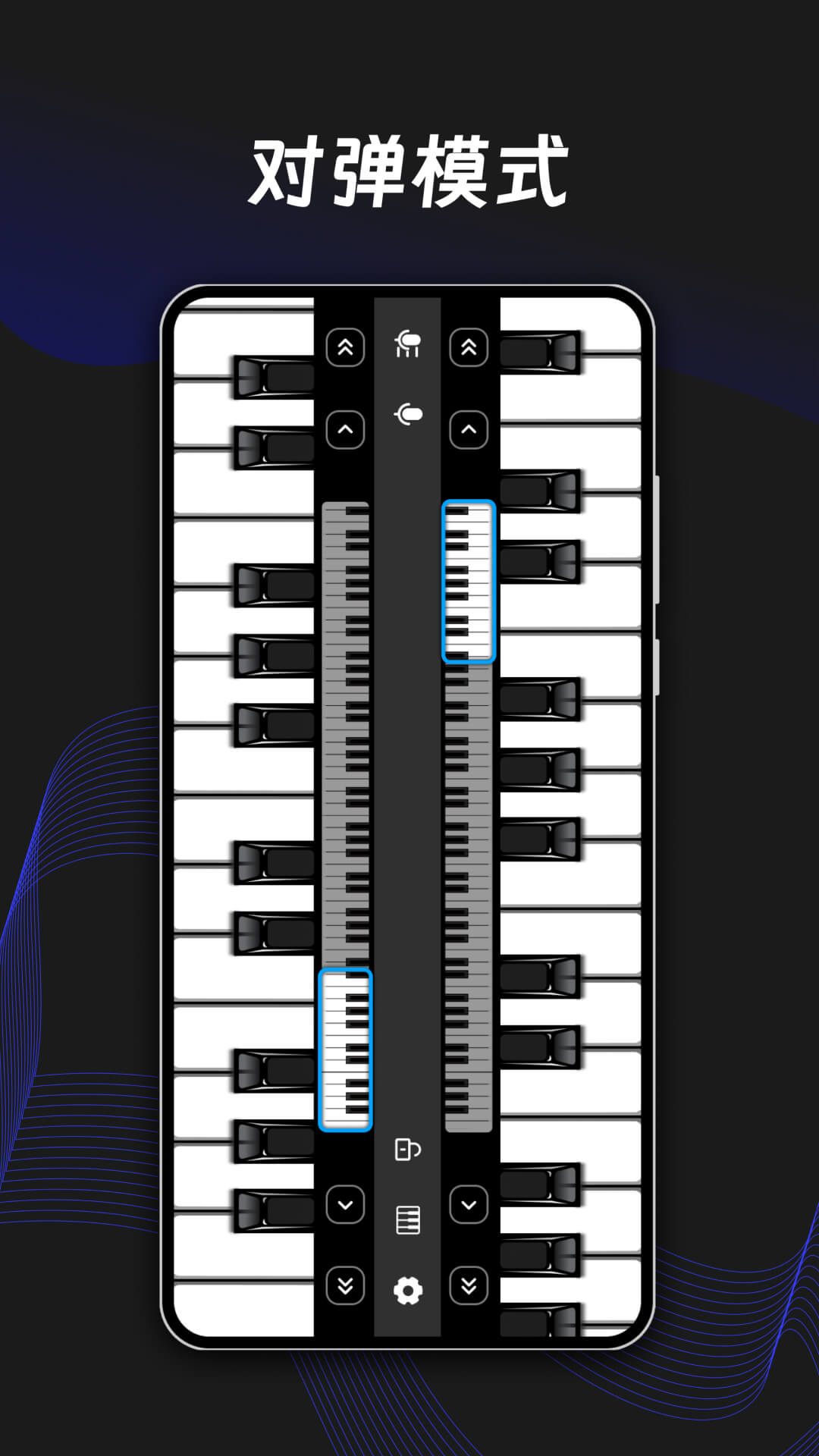 ym电子钢琴能把你的手机变成一个钢琴教练,帮您练琴弹琴,练钢琴节奏,了解钢琴,点击钢琴键盘的左右两边可随时调节钢琴块的范围显示完整。同时支持录音功能,你可以一边弹奏一边录制自己的歌曲,多种钢琴键盘模式:单排横屏模式、双排横屏模式。