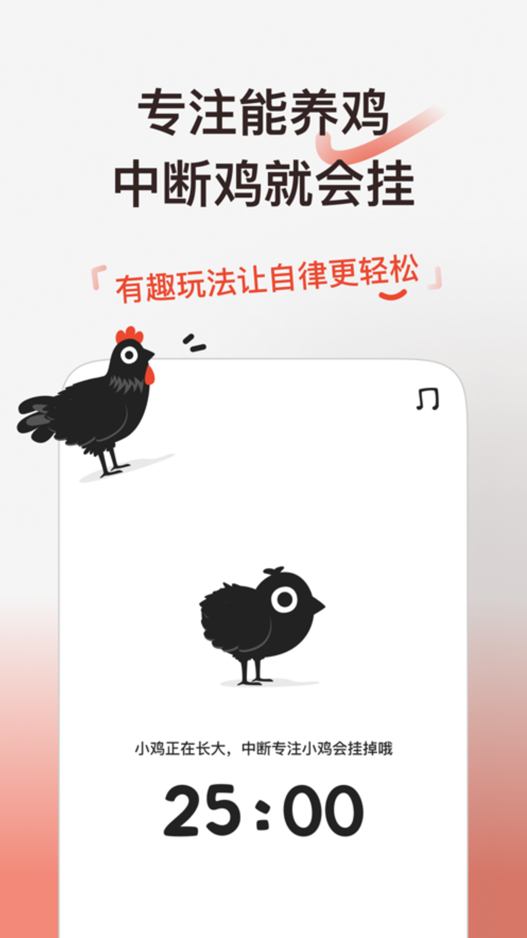 试试小鸡番茄钟吧,一边专注一边养鸡,让生活充满游戏感,学习工作都将轻松有趣!