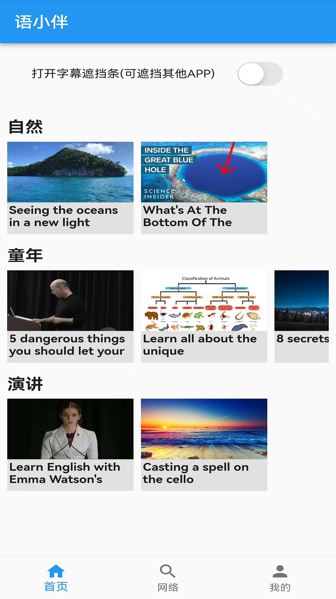 除了内置视频,您也可以直接开启字幕悬浮条,挡自己手机上常用APP的看视频、电视剧、电影软件。全挡或者部分遮挡,就问你爽不爽!几个电视剧电影刷下来,外语不得顶呱呱!