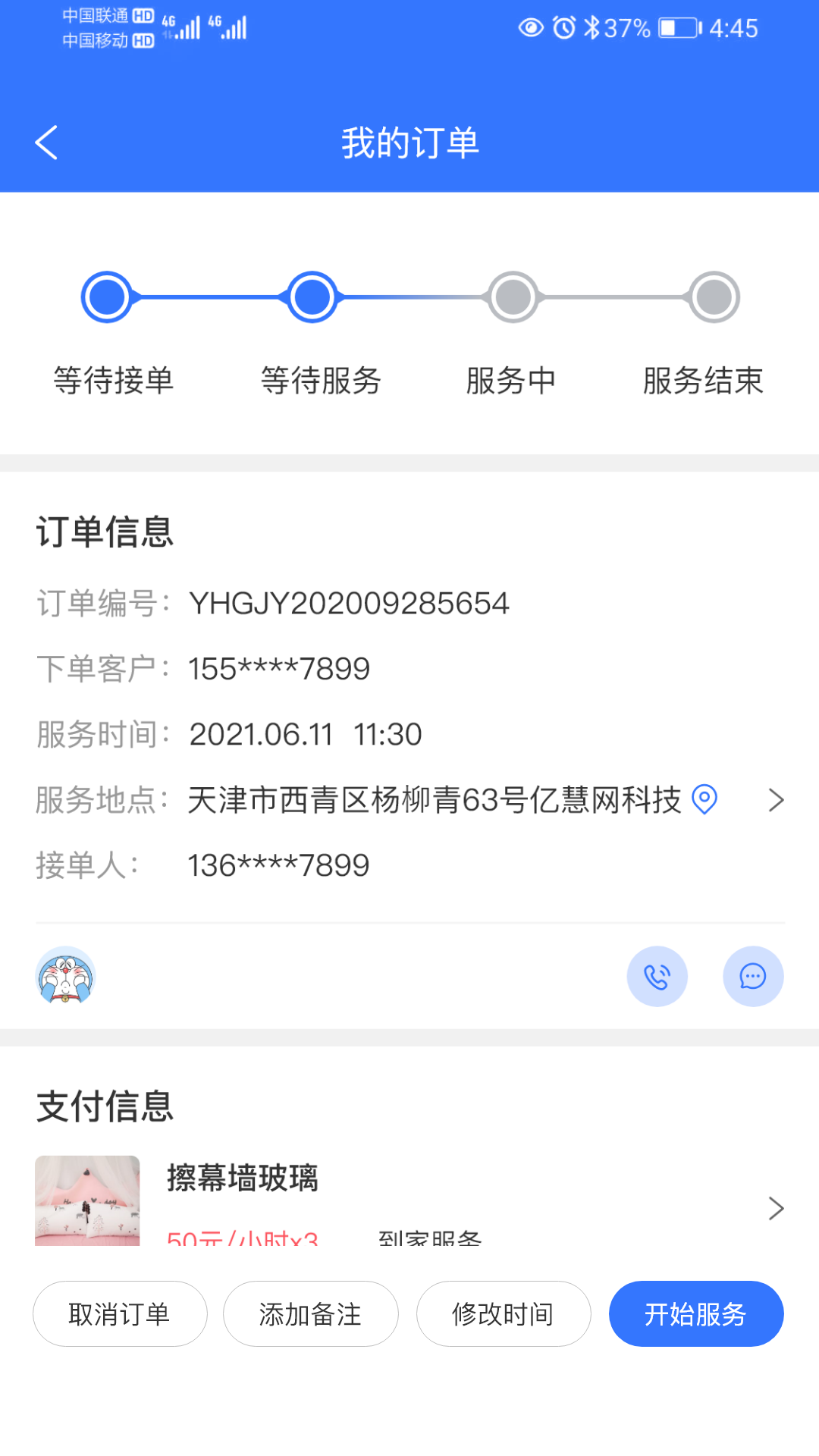 于订单管理而言,商户具备接单、开始服务、确认完工以及查看全部订单等功能;