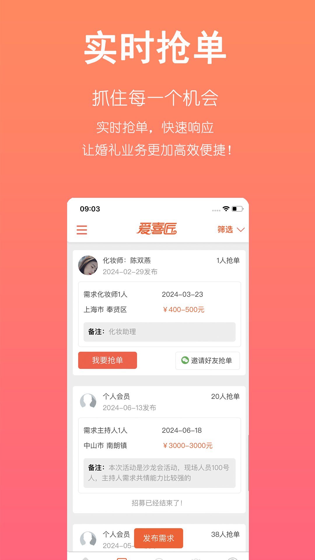 - 需求发布:可以寻找合适的婚礼团队并加入其中,一起打造完美的婚礼。