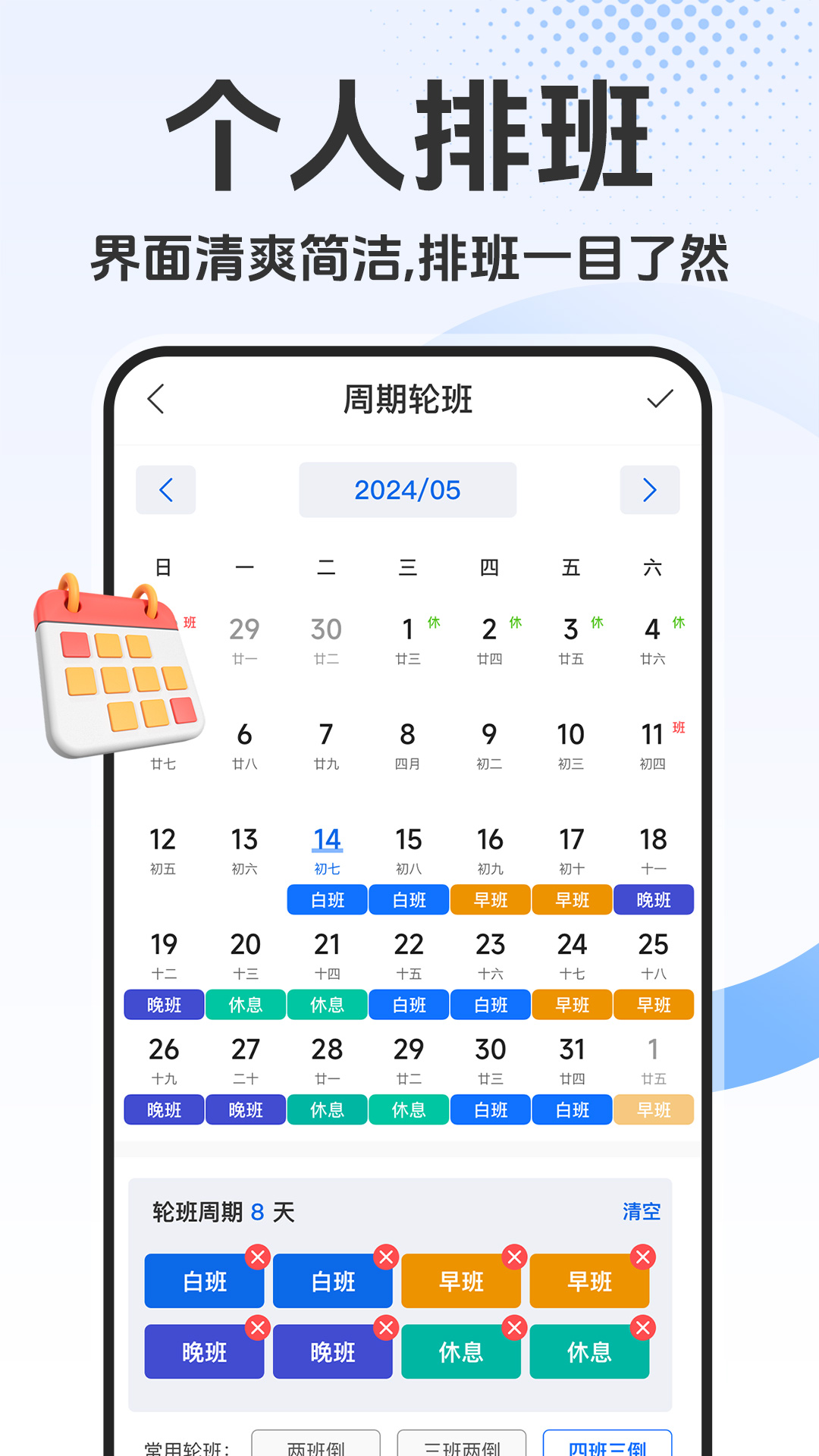 排班日历记工