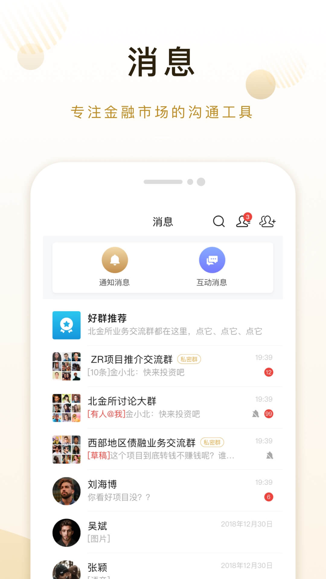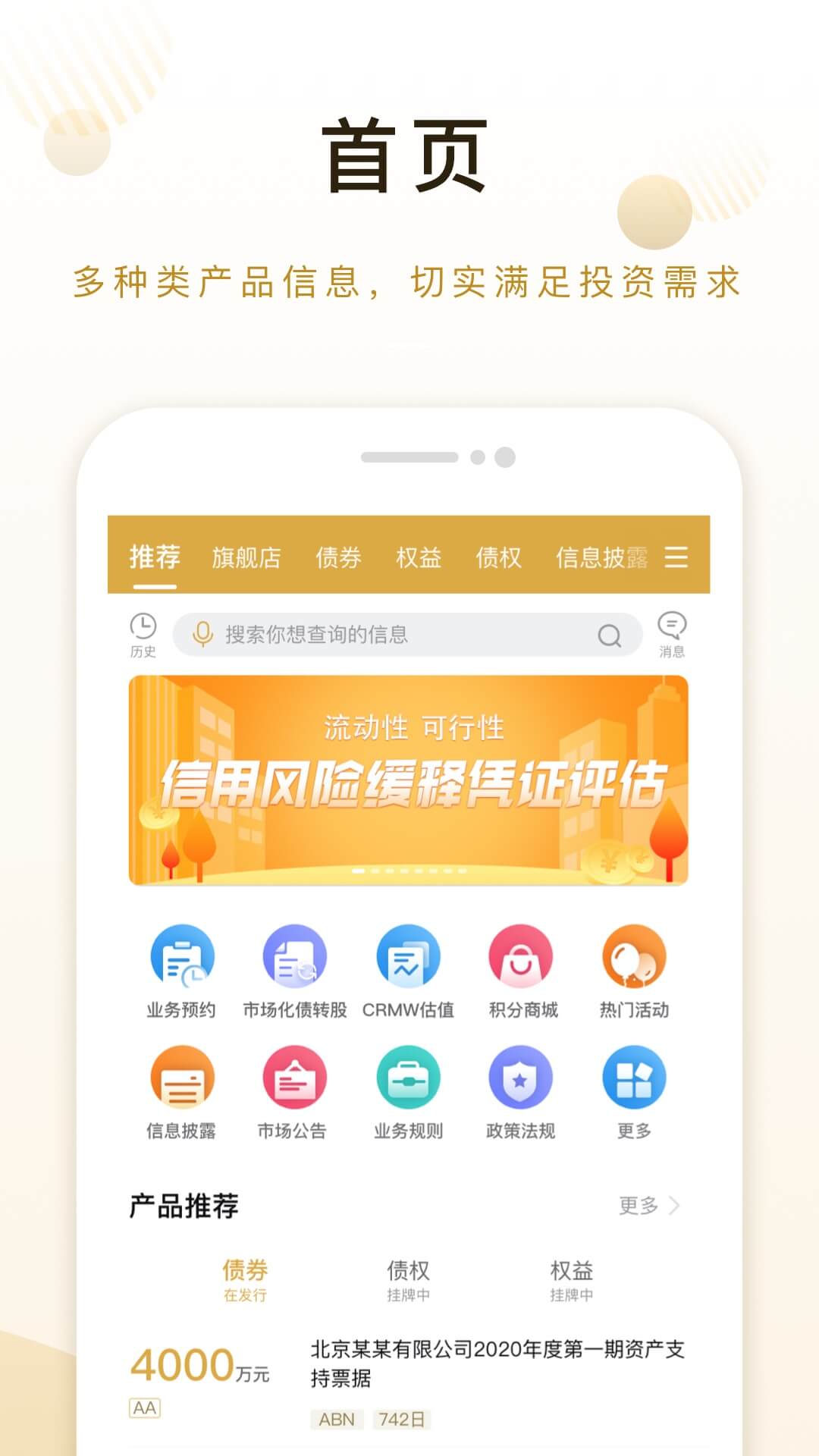 北金所APP以“组织服务市场,促进银行间市场发展”为目标,基于北金所CFAE平台,通过整合北金所自有业务及市场相关业务,致力于打造集业务支持、信息展示、交流互动、用户成长等服务于一体的综合、便捷、智能、高效的移动工作平台。在2017年正式上线运营,向市场成员提供信息服务。