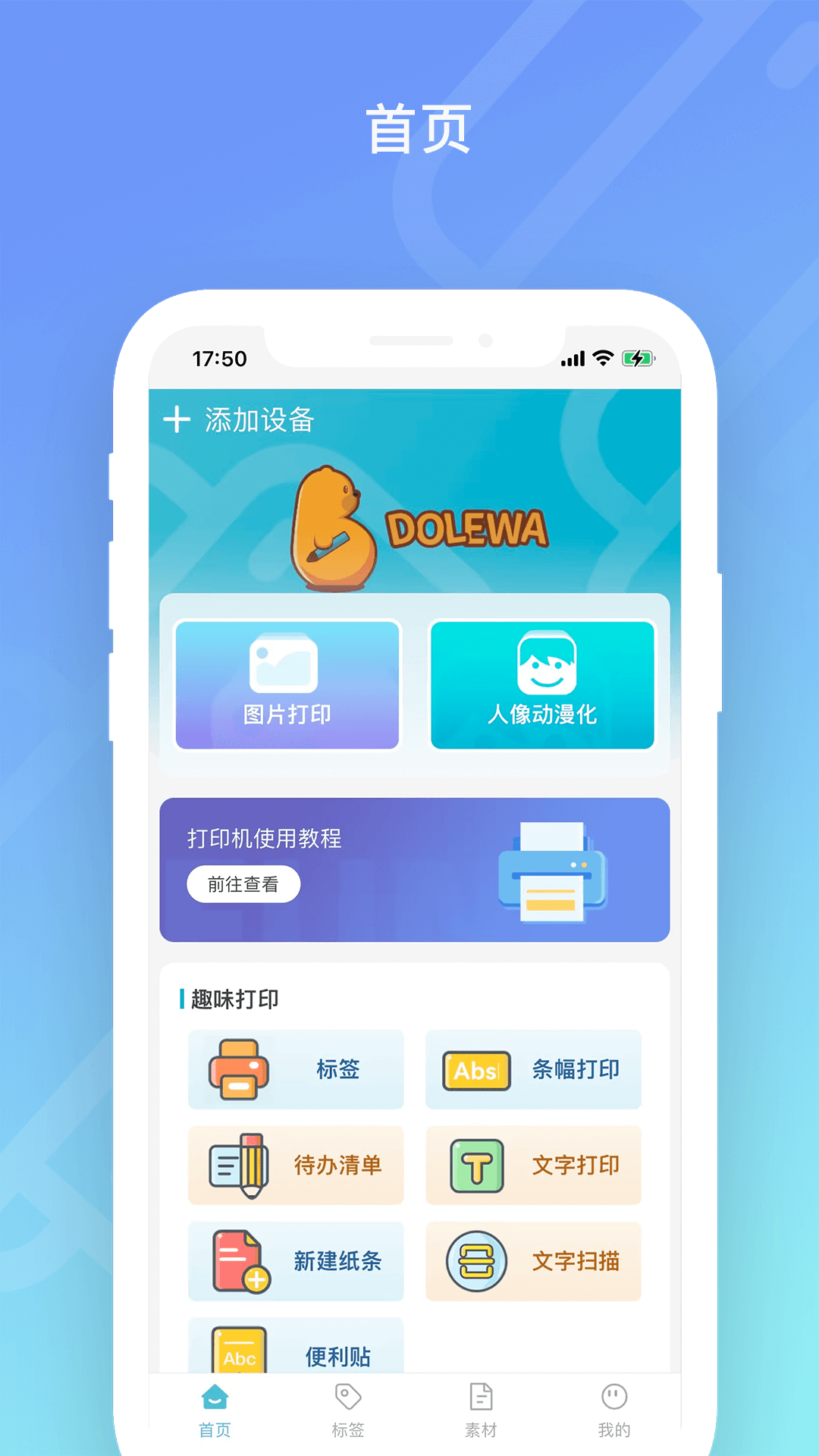 Dolewa是一款便捷的便携打印应用程序,它为用户提供了多种实用功能,像照片打印、文本扫描、文本打印、标签打印、待办清单打印以及人像动漫化等,这些功能能够让用户迅速且便利地进行打印操作。