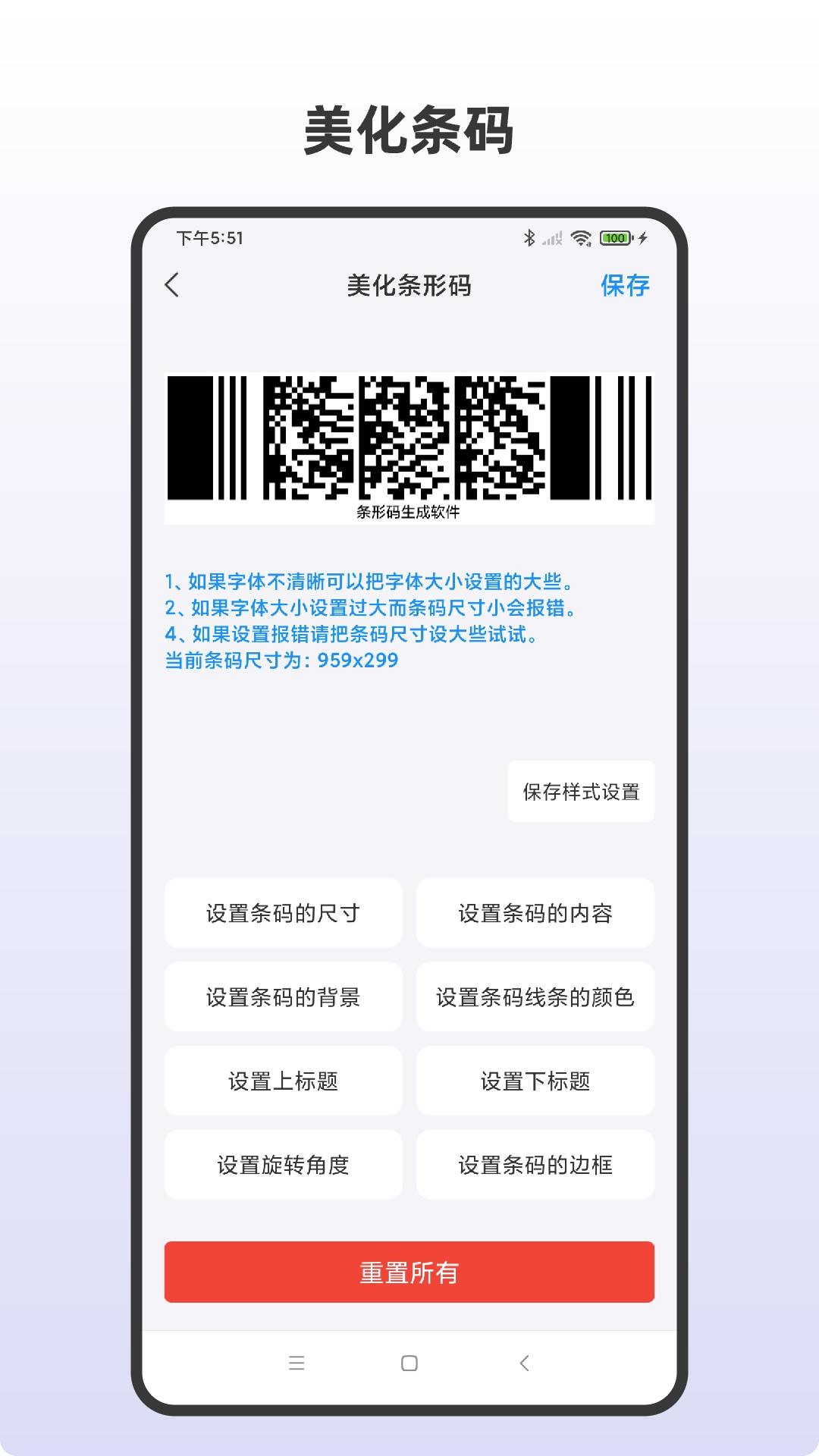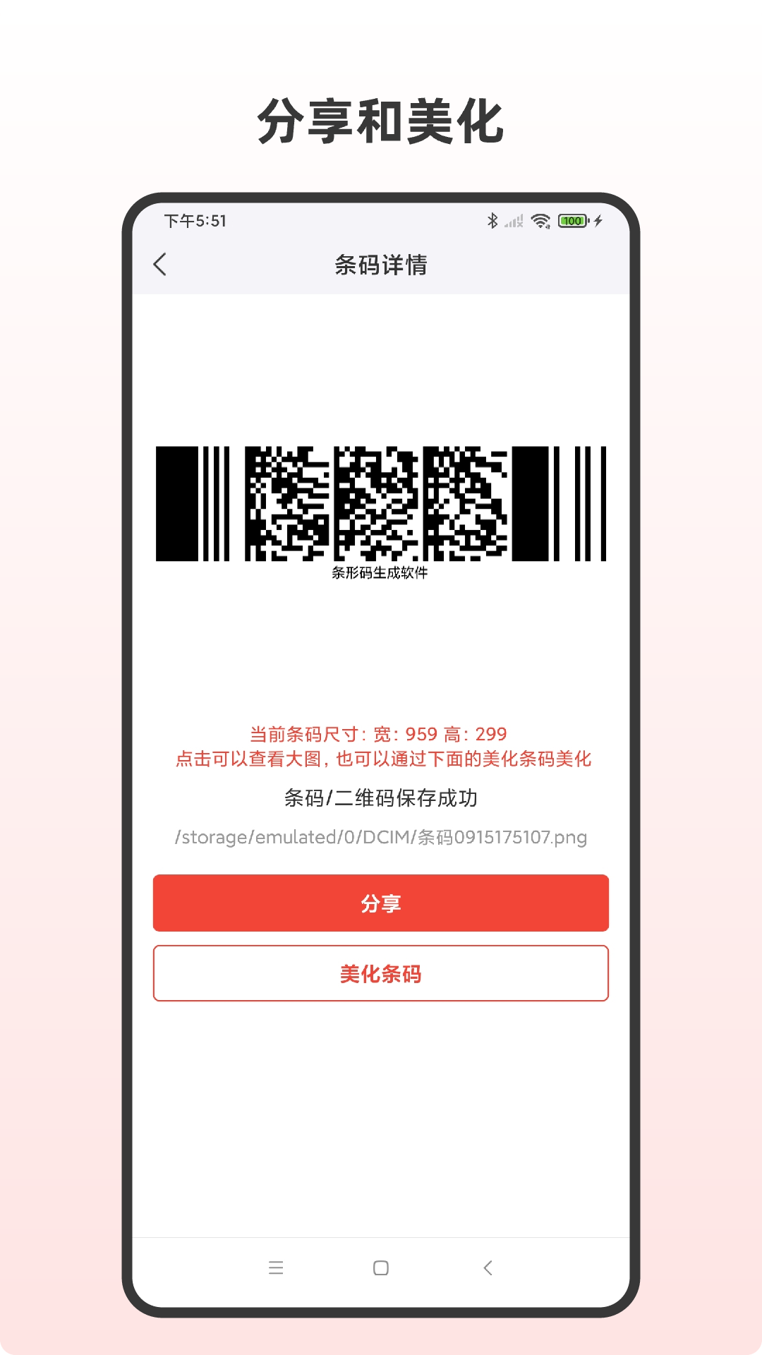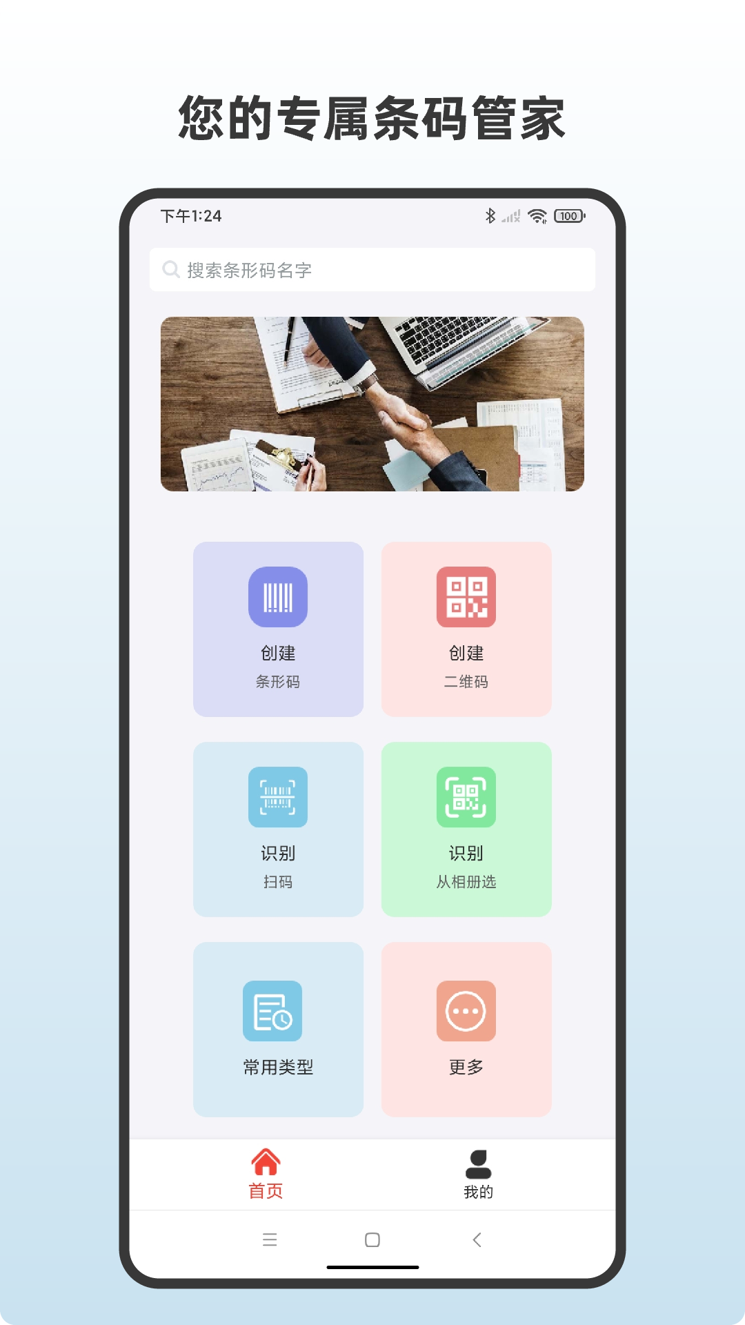 条形码生成助手一款方面的工具,帮助您创建条形码、识别条形码,生成二维码,扫码识别二维码,多种格式任您选择。支持微信和QQ分享,支持连接打印机打印,支持保存到本地。