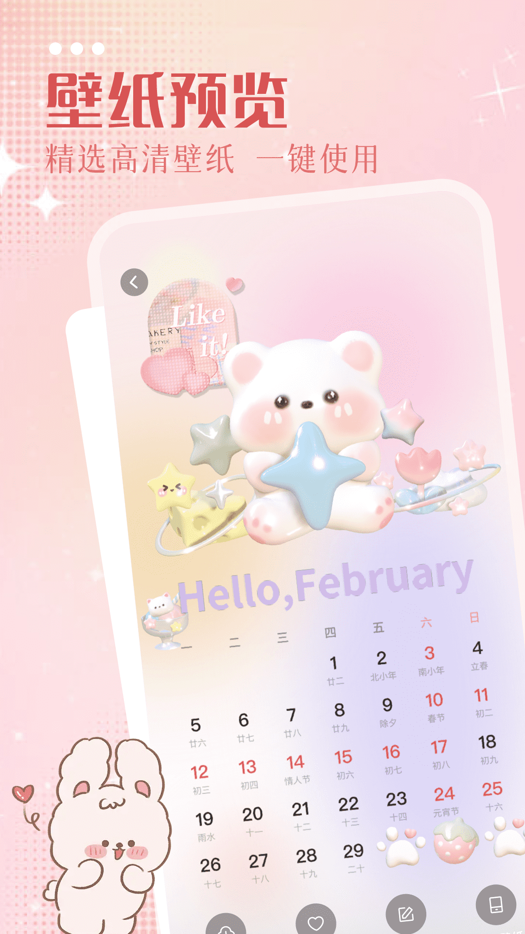 壁纸中内置许多精选的个性化壁纸,只需要一键使用就可装饰你的手机桌面